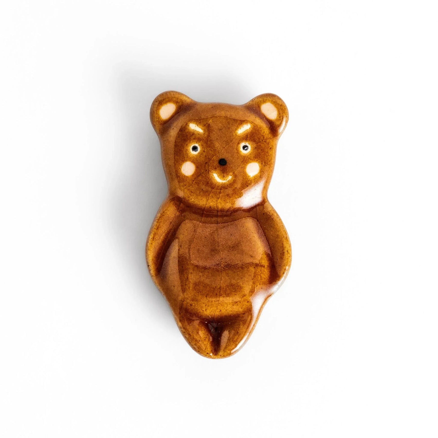 The Bear Chopstick Rest brings both folklore and playfulness to your dining table. Its friendly upright form is inspired by the tale of Kintaro, a legendary child hero in Japanese folklore who is said to have wrestled a bear as a symbol of strength and bravery. With its rounded body, warm brown glaze, and cheerful expression, this small ceramic piece creates a lighthearted atmosphere and is sure to spark smiles at every meal.