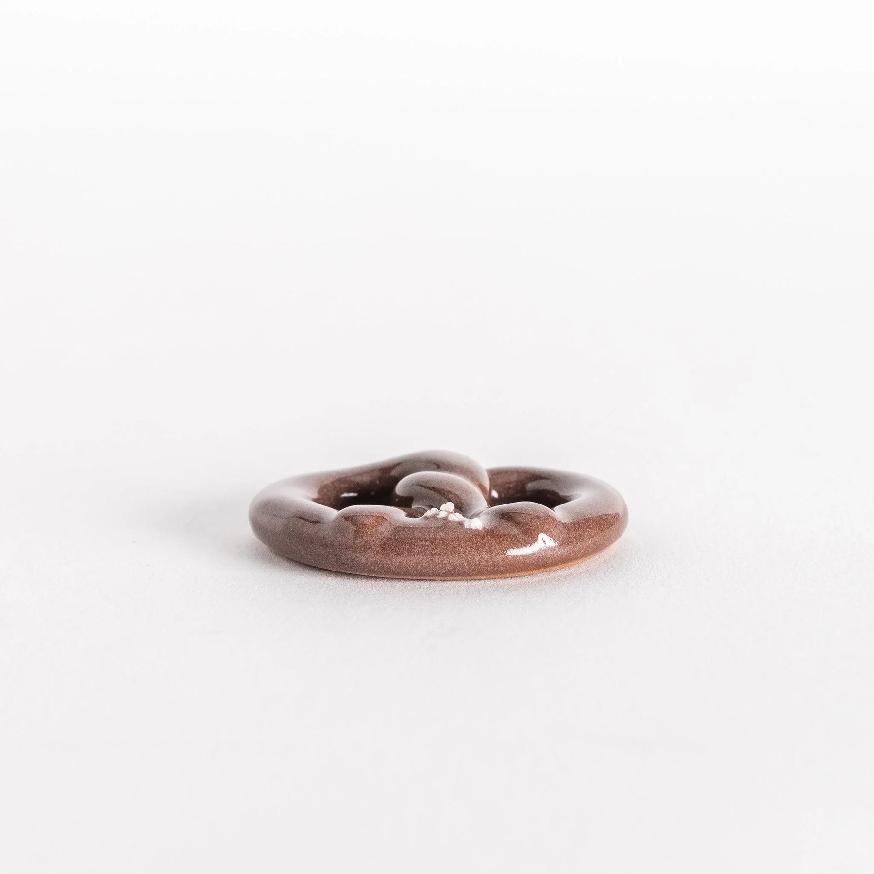 The Pretzel Chopstick Rest brings a playful twist to the table. Shaped like a miniature pretzel, it looks so realistic that it might tempt you to reach for a bite. The glossy glaze captures the golden brown of baked dough, while small white accents resemble grains of salt sprinkled on top. This attention to detail gives the piece a warmth that immediately sparks smiles.