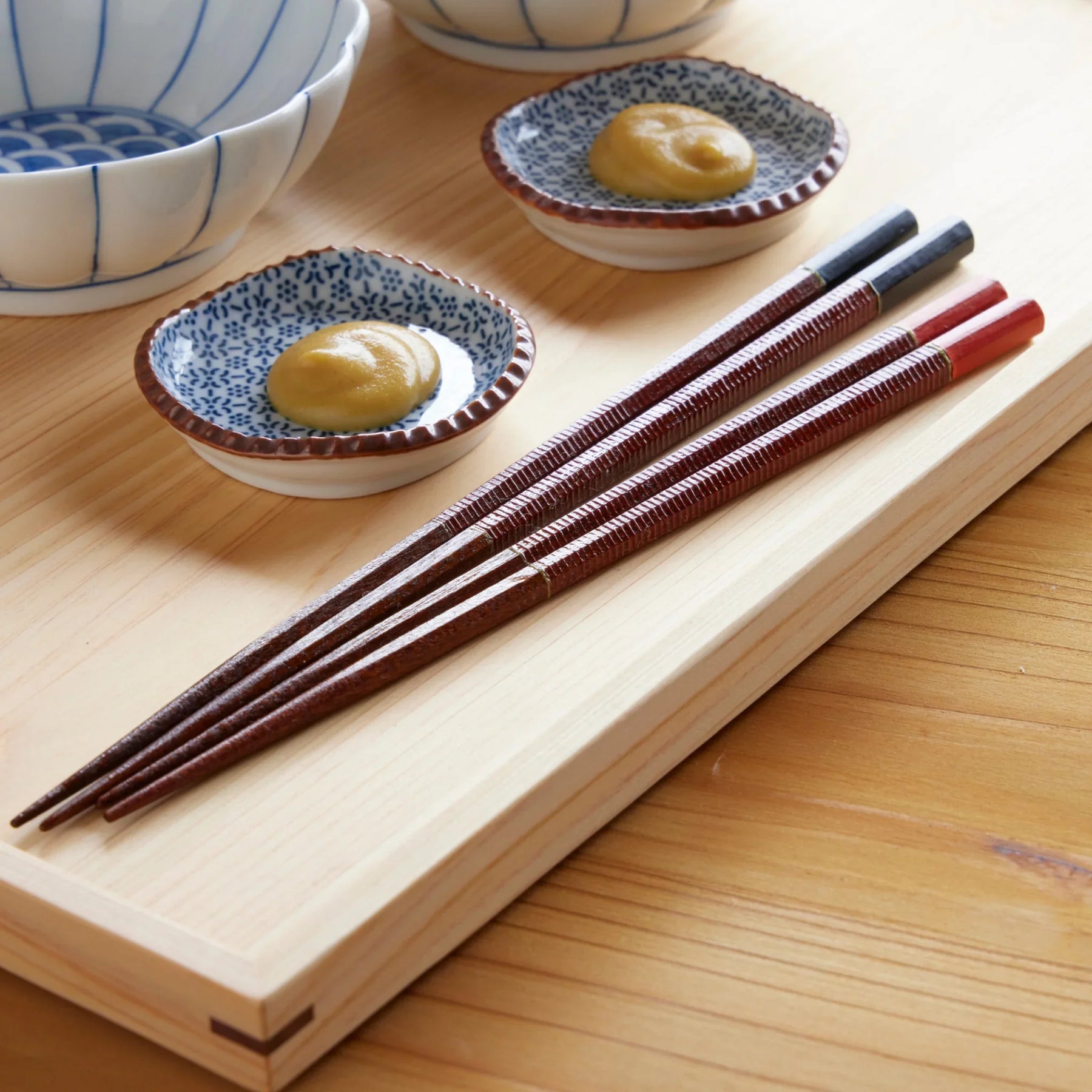 Lightweight yet sturdy, these chopsticks are designed for everyday meals as well as more formal gatherings. Their smooth texture ensures a comfortable grip, making them both practical and pleasing to use. As a pair of complementary colors, vermilion and black have long carried symbolic meaning in Japan, often associated with harmony and celebration, making this set a thoughtful gift for weddings, anniversaries, or shared milestones.