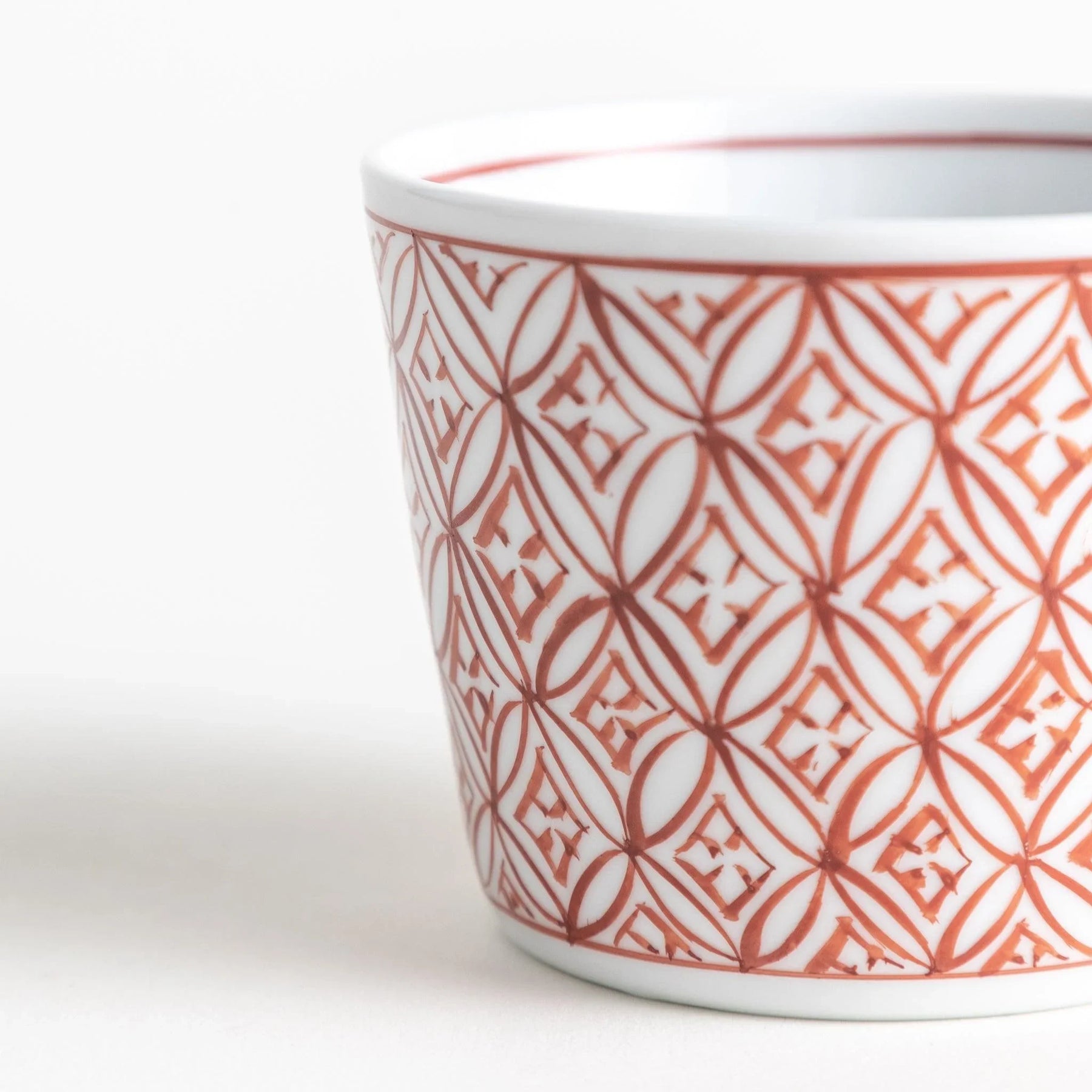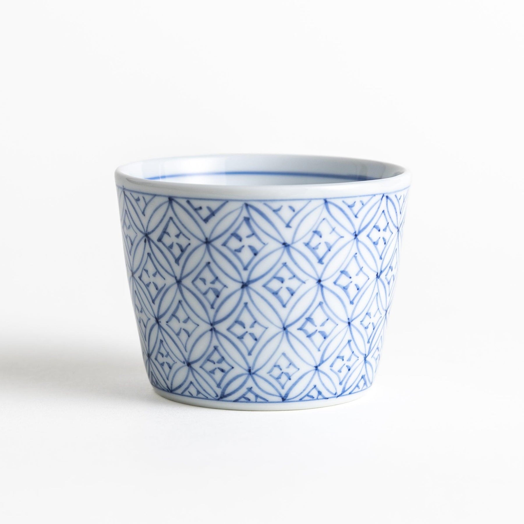 The Geometric Condiment Bowl is an elegant piece of Arita ware that highlights the timeless shippō-tsunagi, or “seven treasures,” pattern. This traditional Japanese motif of interlocking circles represents harmony, connection, and good fortune, and here it is expressed through delicate hand-painted lines. Offered in classic indigo blue or vibrant vermilion, its symmetrical design adds cultural depth and refined artistry to your table.