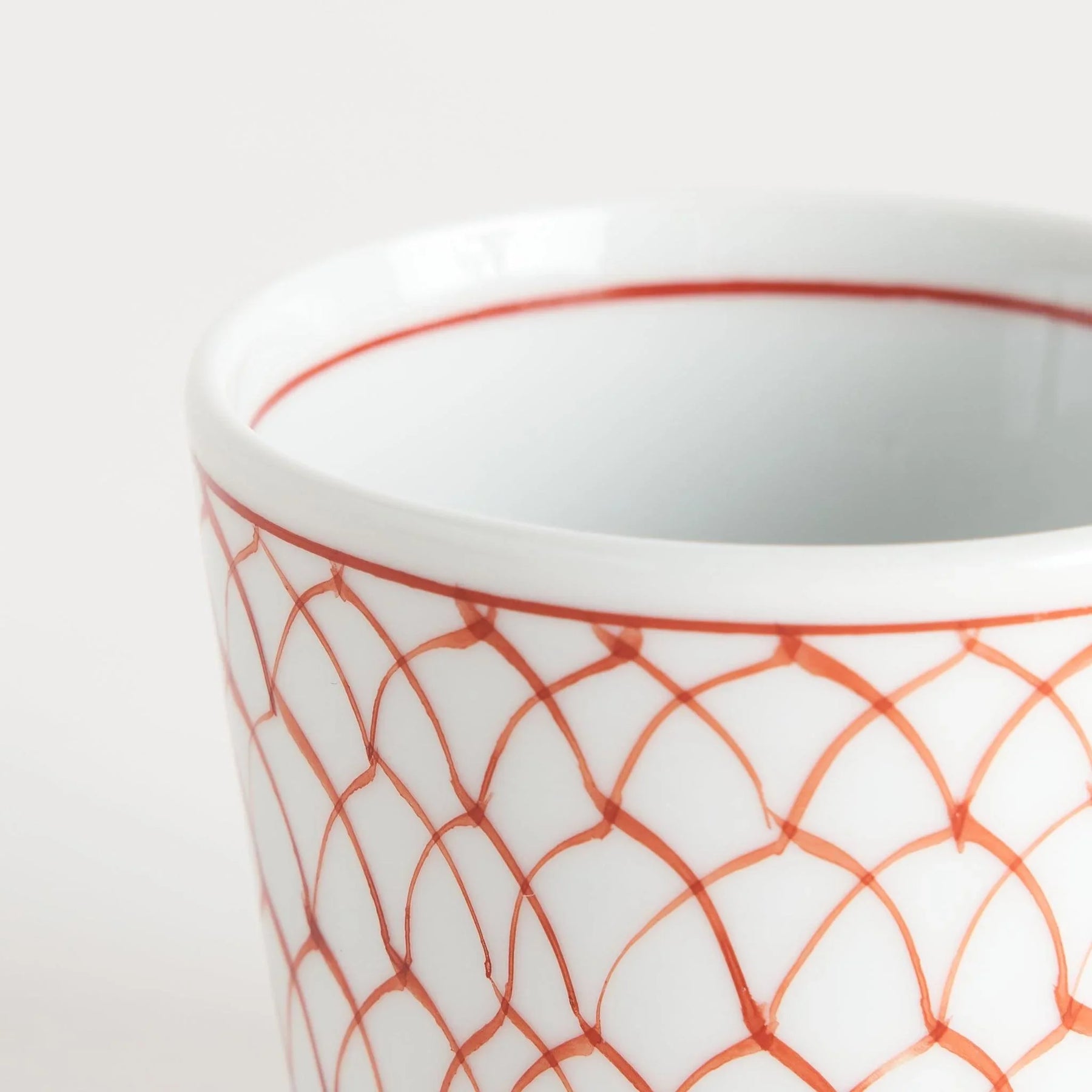 The Mesh Pattern Small Condiment Bowl blends functional versatility with the elegance of minimalist Japanese design. Crafted in Arita ware porcelain, it features a hand-painted mesh pattern in either deep blue or warm red, creating a sense of symmetry and refined detail. The clean lines and balanced proportions make it an attractive accent on any table.