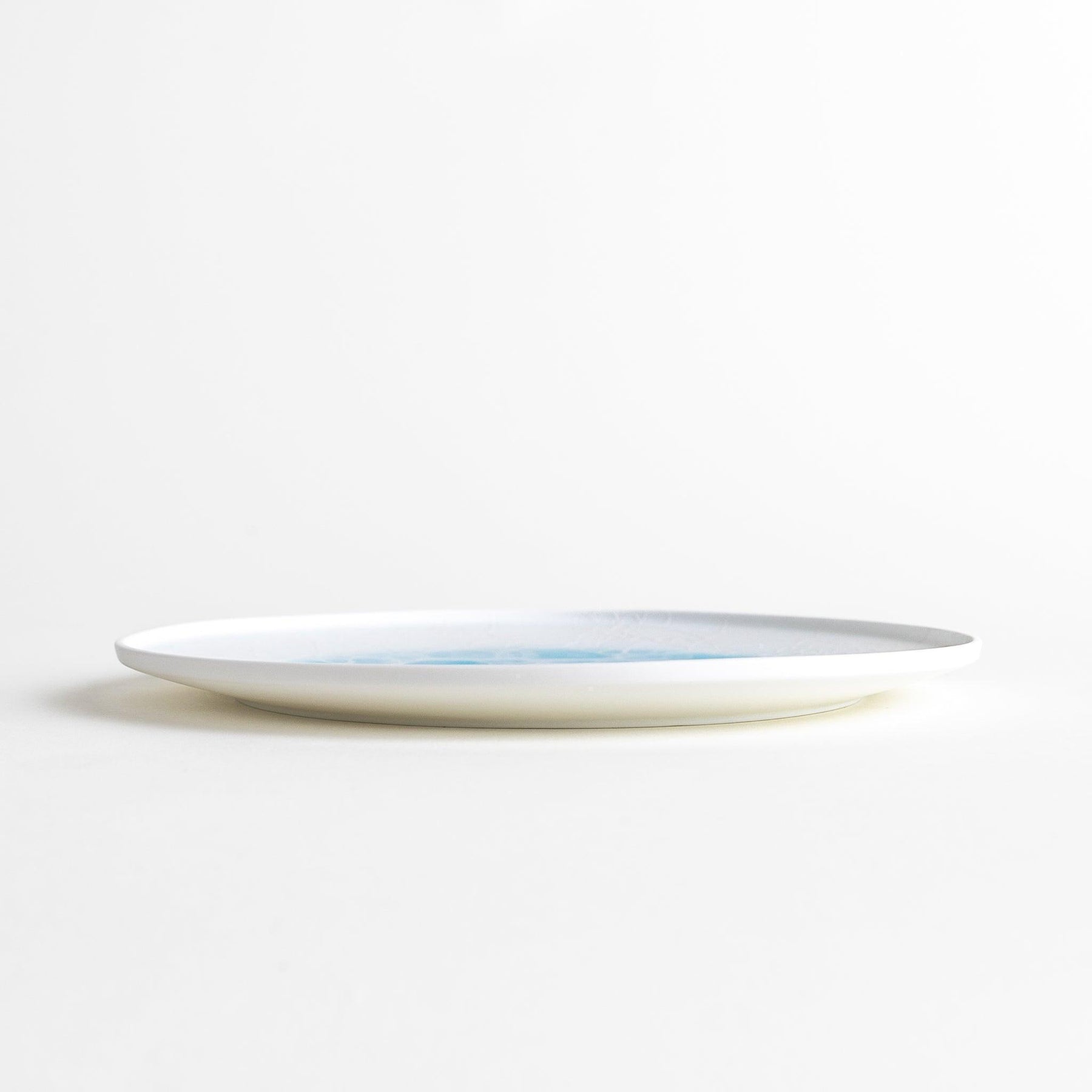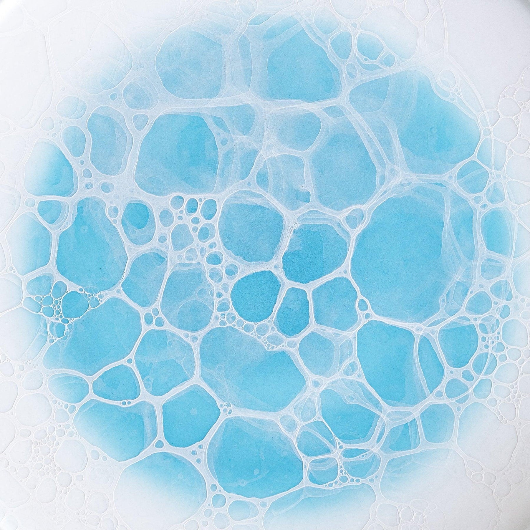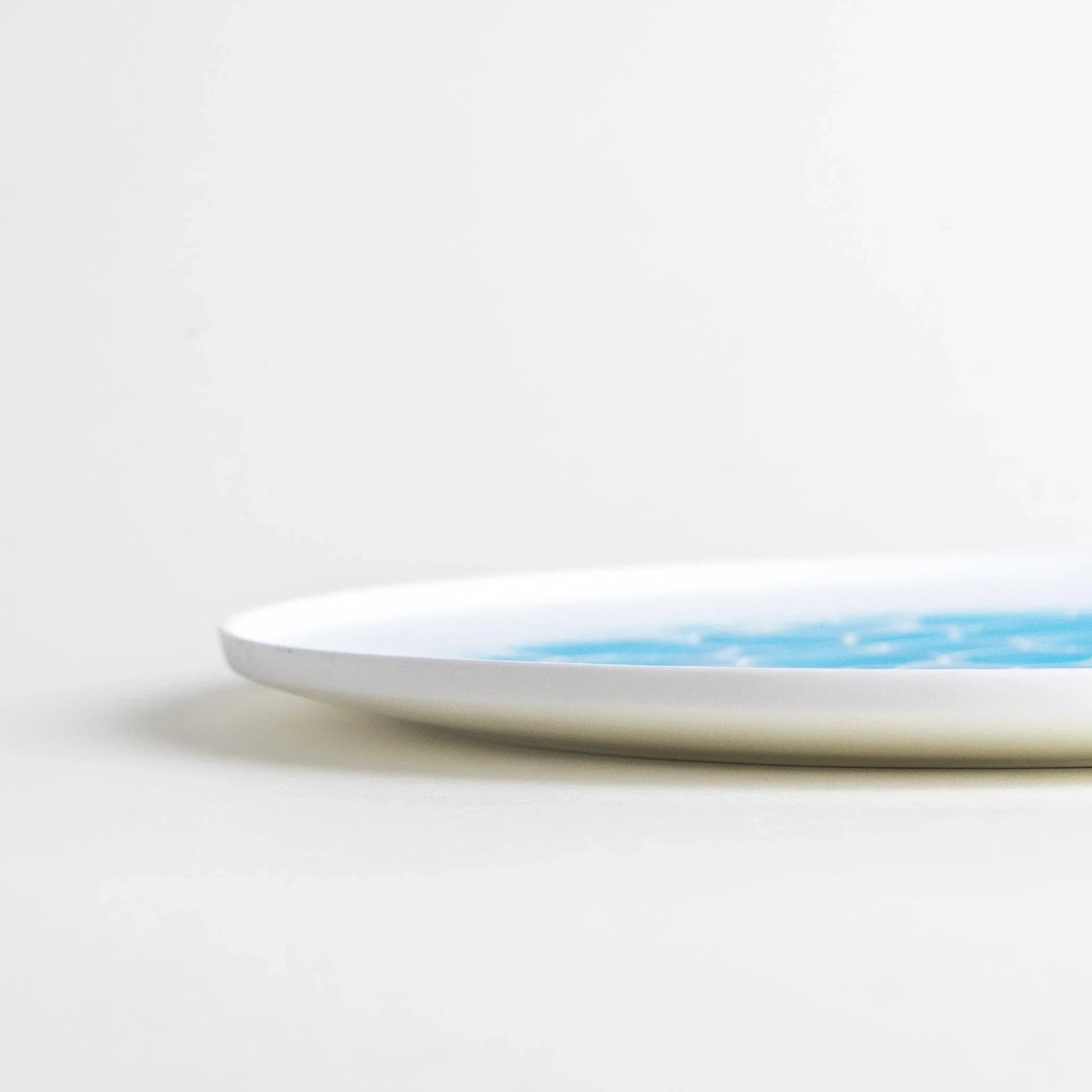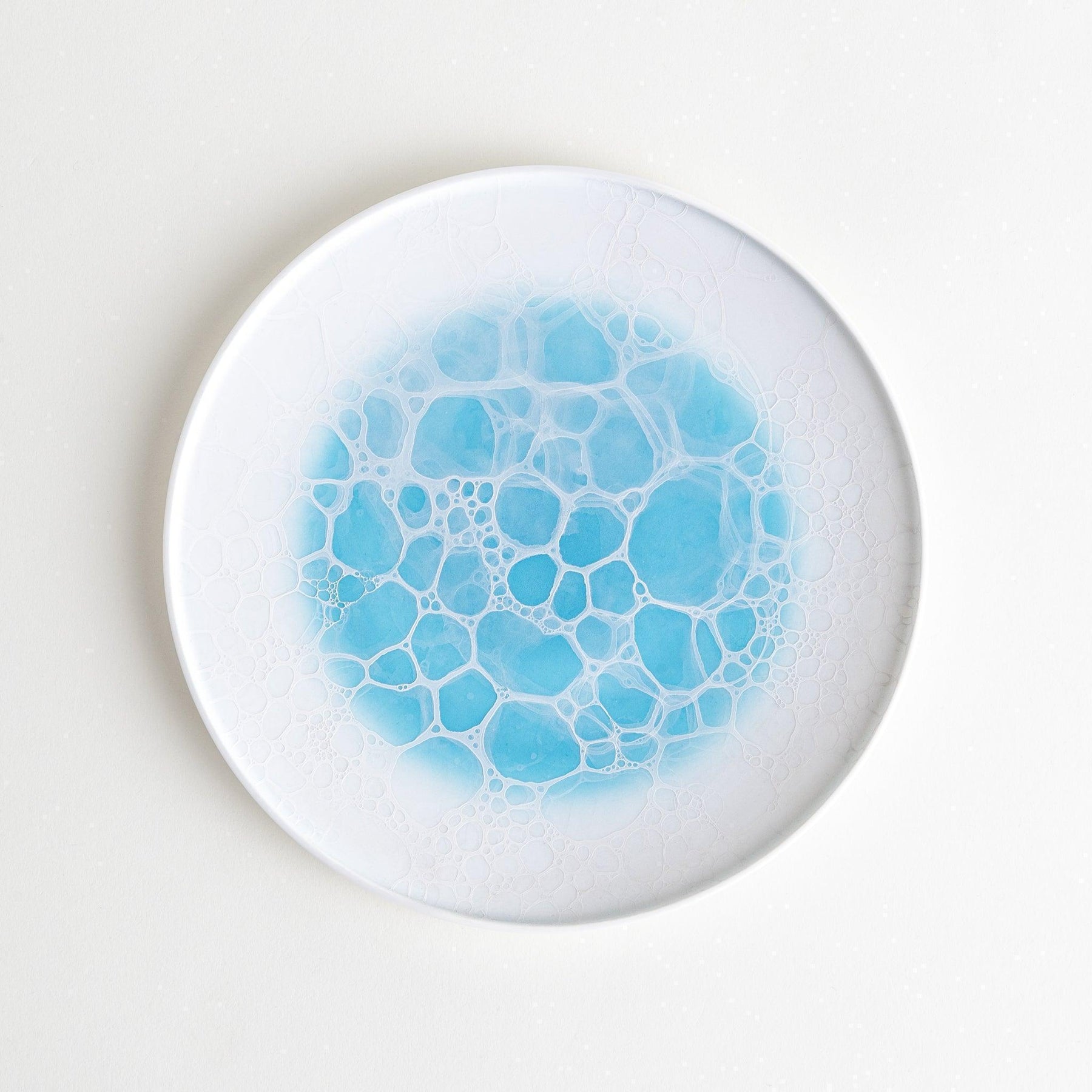 The Blue Bubble Three Piece Plate Set captures the freshness of rippling water, with lively turquoise bubbles drifting across smooth white porcelain. The pattern, scattered in a natural rhythm, catches the light in a way that recalls sunlight shimmering on a calm sea. A delicate crackle effect inside each bubble adds texture and depth, making the design as engaging up close as it is across the table.