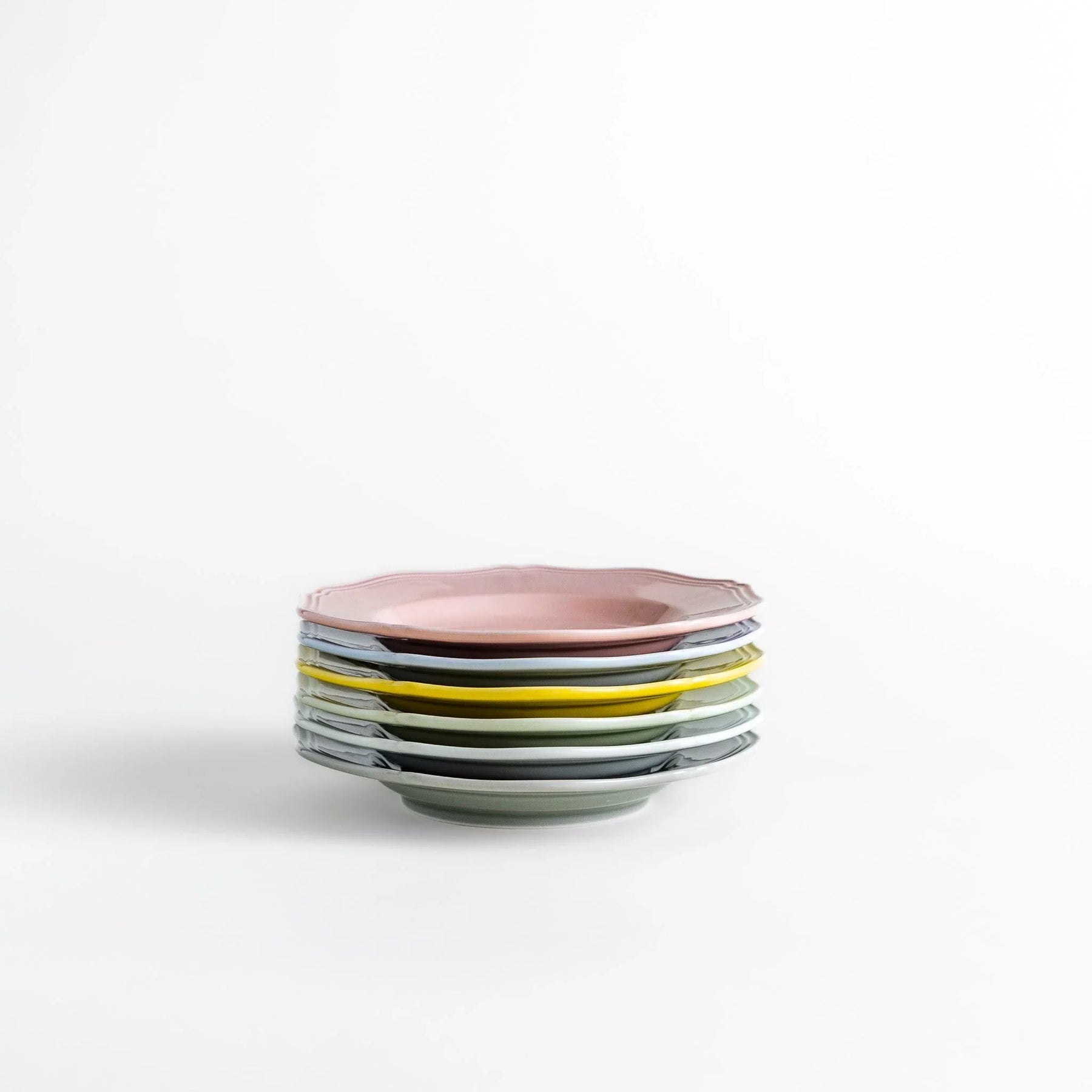 Soft pastels bring a gentle cheer to the table with the Pastel Serenity Dessert Plate. Handcrafted in Hasami ware, it is offered in six delicate shades—pink, blue, yellow, green, white, and gray—that recall the freshness of spring blossoms and the lightness of a sunny afternoon. Mixing the colors creates a playful setting, while a single shade feels simple and elegant.