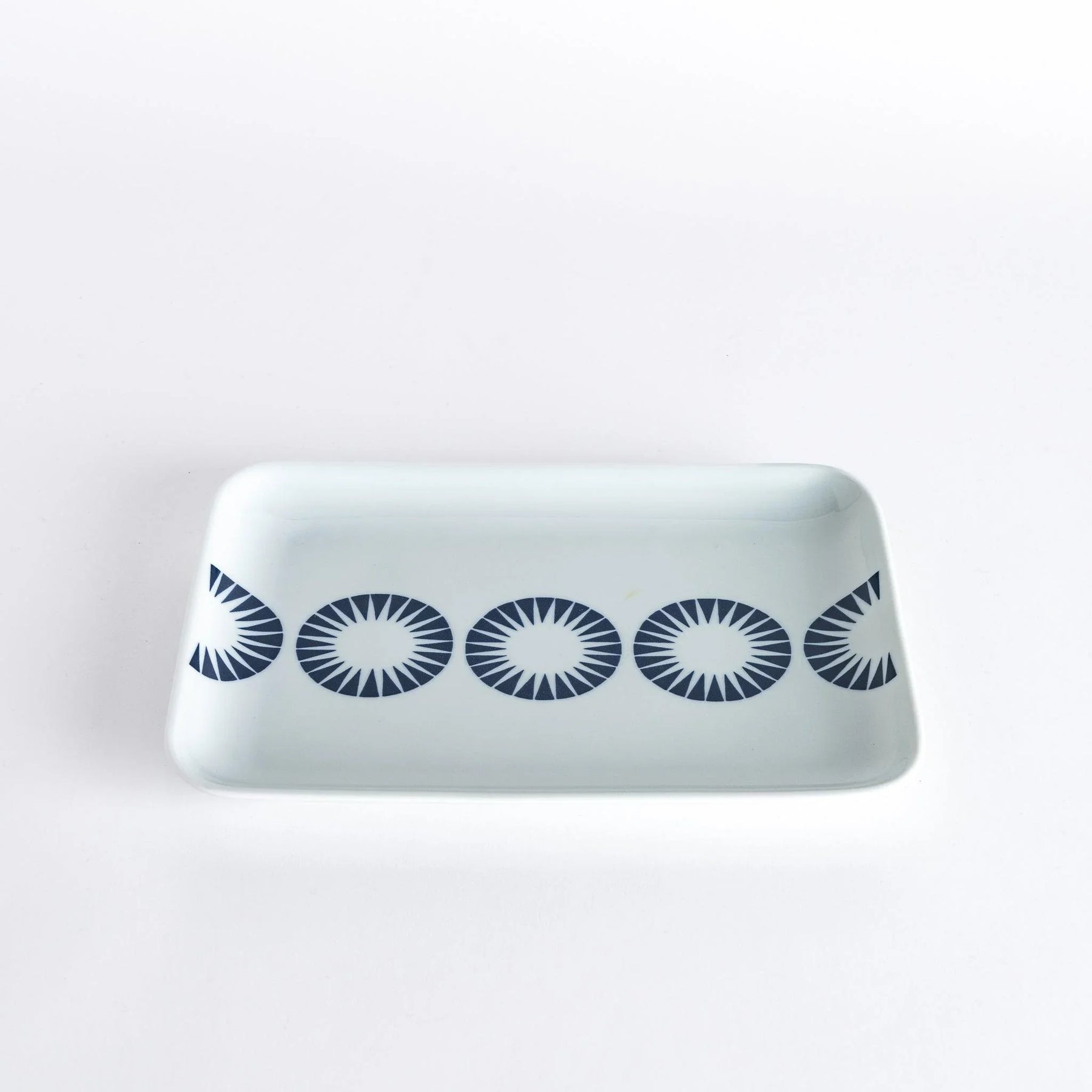 The Modern Indigo Circle Dinner Plate brings a fresh rhythm to the table with its repeating indigo motif of radial lines. Each deep blue circle is precisely printed onto smooth white porcelain, forming a pattern that feels both structured and playful. The clean rectangular shape adds a contemporary edge, while the gently sloped rim helps contain sauces and garnishes with ease.
