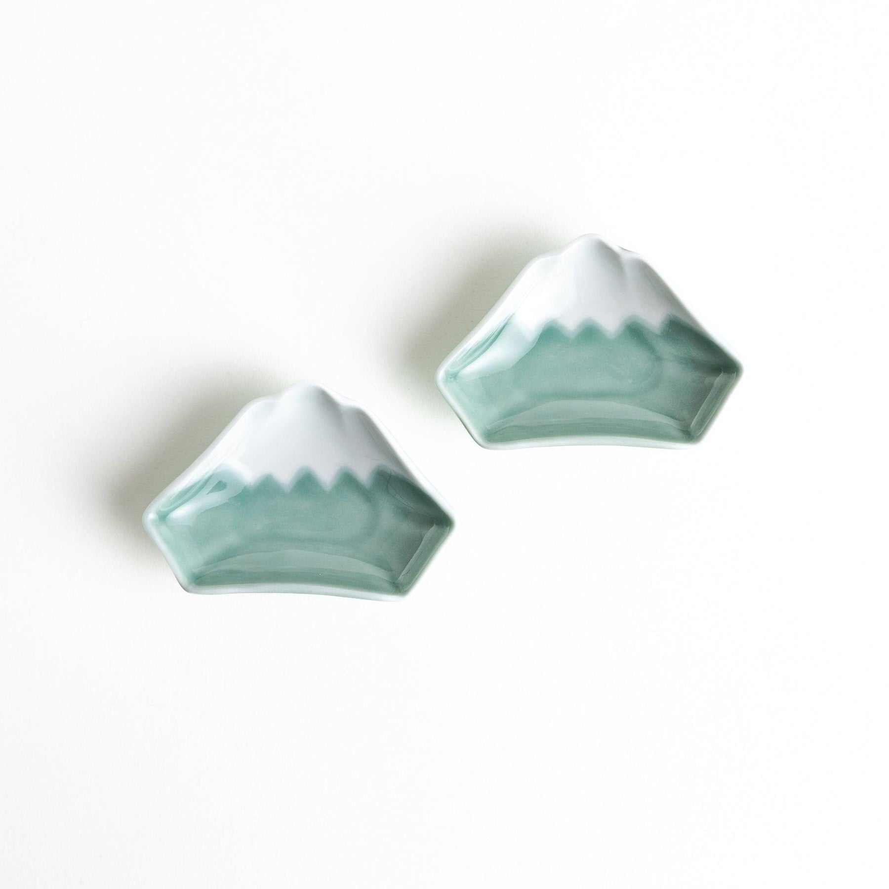 Inspired by the iconic silhouette of Mt. Fuji, the Mount Fuji Mini Sauce Dish Set brings a playful yet refined presence to the dining table. Each dish is delicately shaped to resemble the famous peak, with a soft greenish-blue glaze that evokes mountain mist and seasonal tranquility. Handcrafted by skilled artisans at Seizan Kiln, these petite porcelain pieces reflect a quiet attention to detail and tradition.