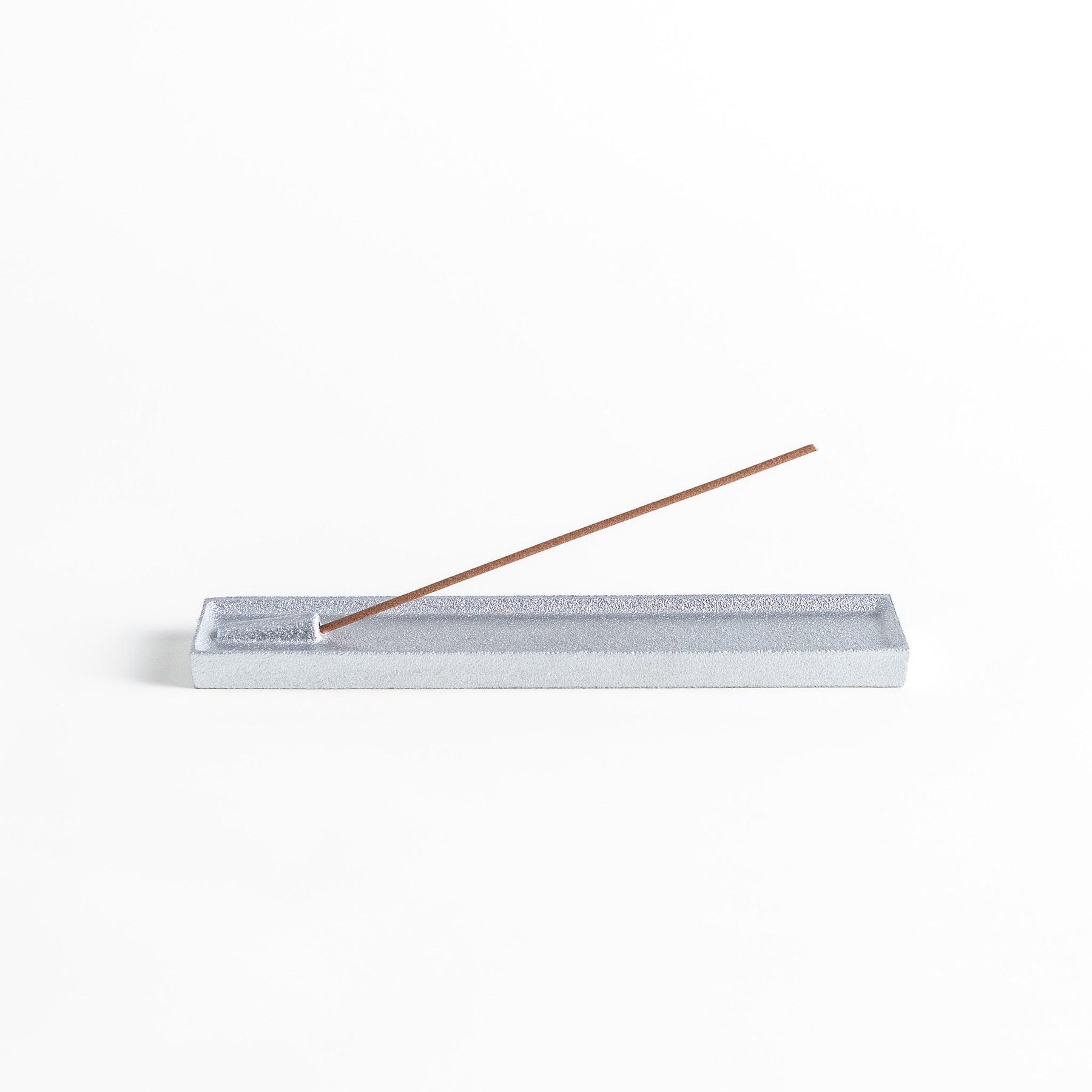 The elongated tray design is both refined and functional. A small opening holds the incense stick securely in place, while the raised edges neatly collect falling ash, keeping your space tidy and easy to maintain. Its simplicity highlights the beauty of the burning incense itself, enhancing the calming ritual with quiet sophistication.