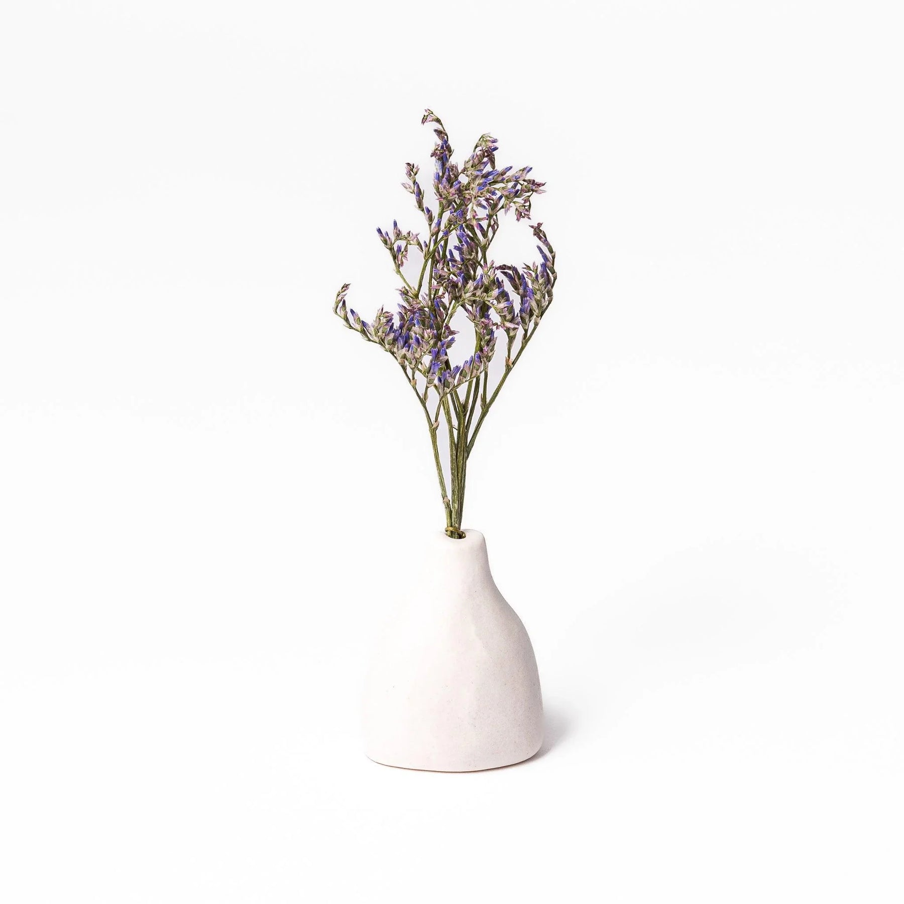 Finished in a calming matte white, these vases invite you to highlight single stems, seasonal blooms, or delicate dried flowers. Their understated design pairs effortlessly with many interiors, whether you lean toward modern minimalism, rustic textures, or the gentle imperfection of wabi-sabi style.