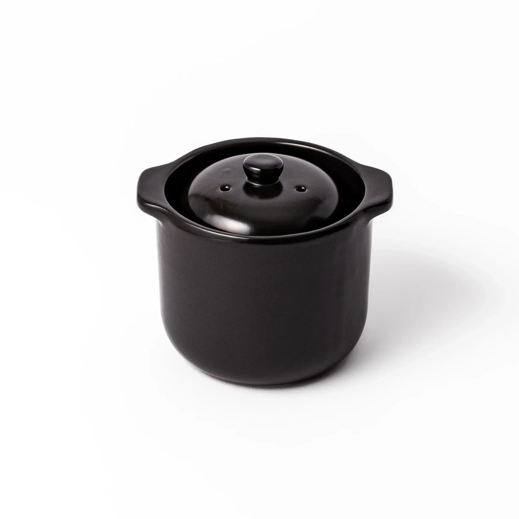 Finished in sleek black, the ceramic body warms evenly, much like a small donabe, enhancing the natural sweetness of each grain. Compact in size, easy to clean, and safe for direct flame when needed, it adapts to small kitchens and busy routines.