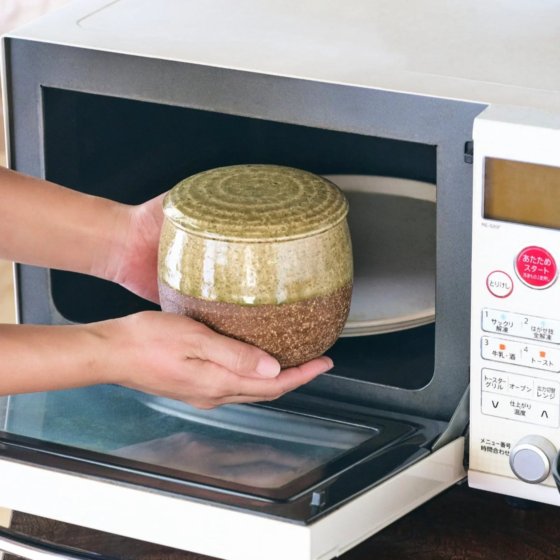 This ohitsu is designed for both storage and reheating. Place leftover rice directly in the bowl, cover, and refrigerate. When it is time to serve, simply reheat in the microwave. There is no need for extra containers. The porous ceramic interior gently absorbs excess moisture during storage and releases it when warmed, restoring the texture and aroma of freshly steamed rice.