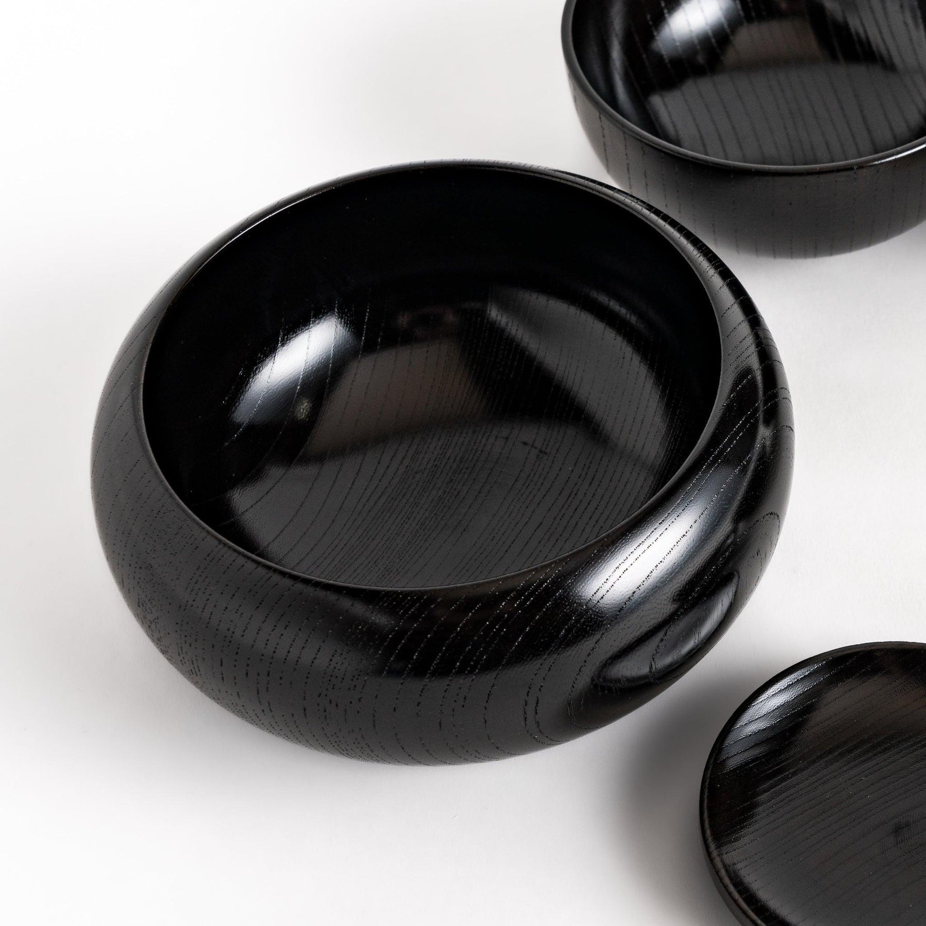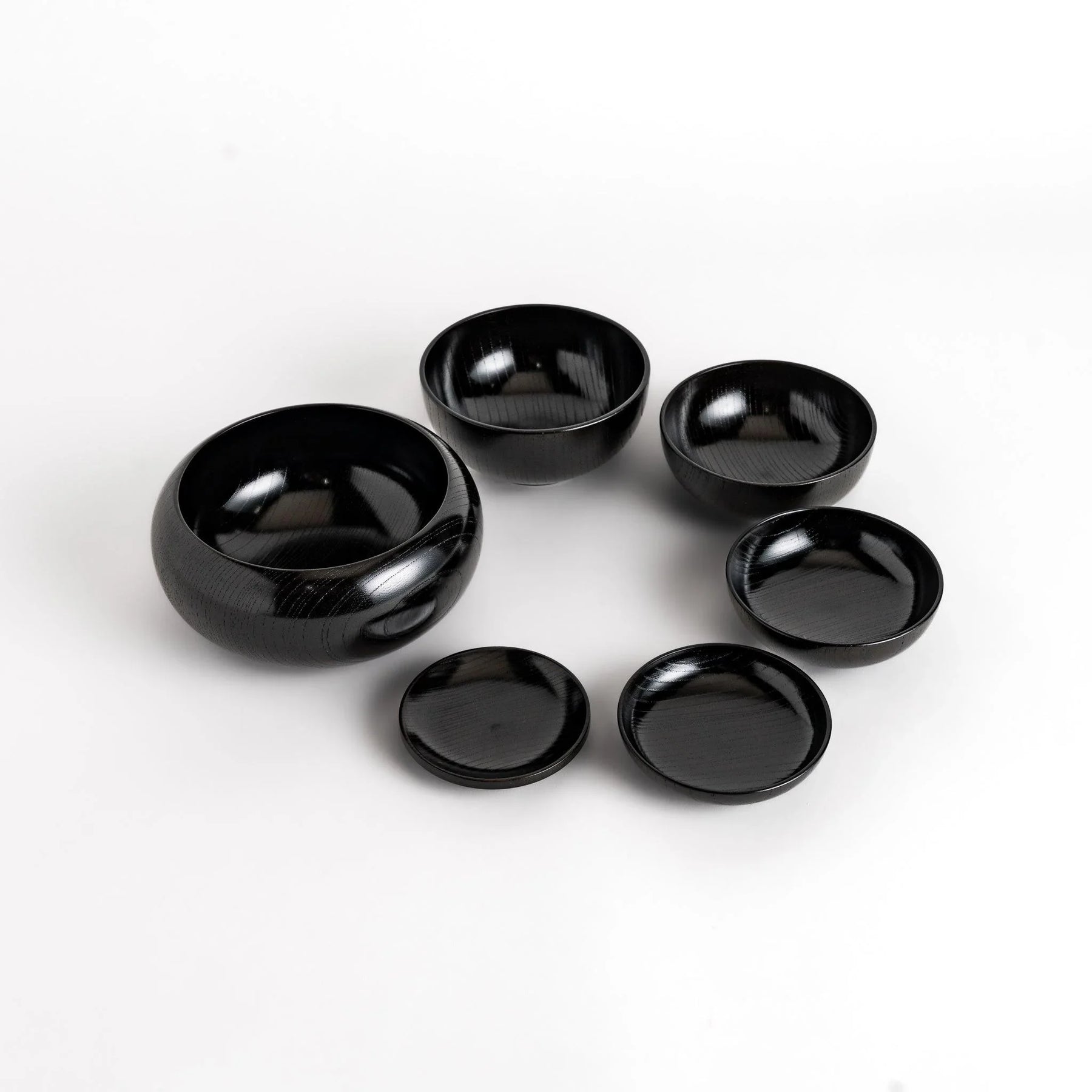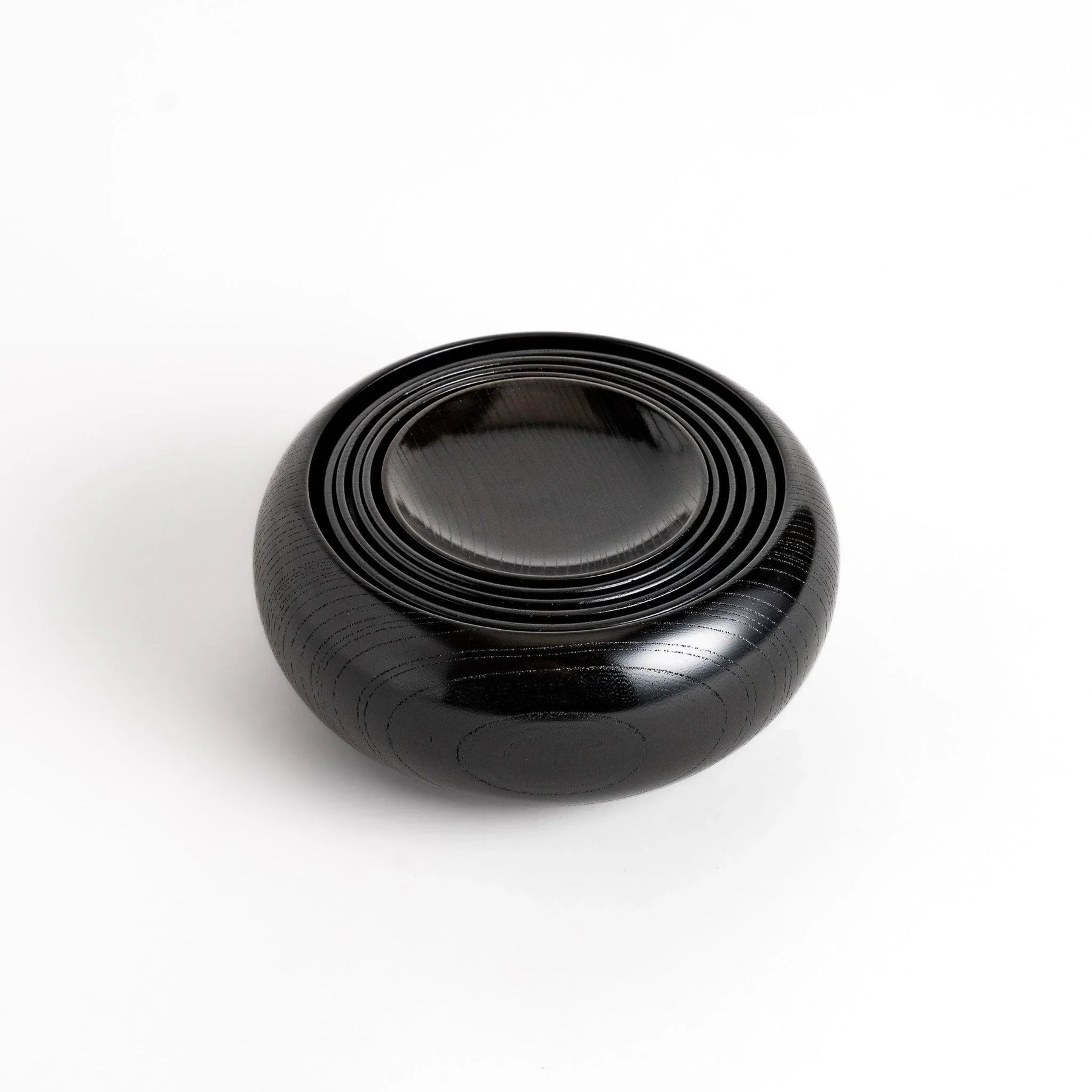 The Black Lacquered Oryoki Bowl reflects both tradition and quiet refinement. Carved from Japanese zelkova wood, each piece reveals subtle wood grain beneath layers of hand-applied lacquer, creating a deep, lustrous finish. Designed as a complete set of six nesting bowls, they stack neatly inside one another, a detail that balances beauty with practicality.