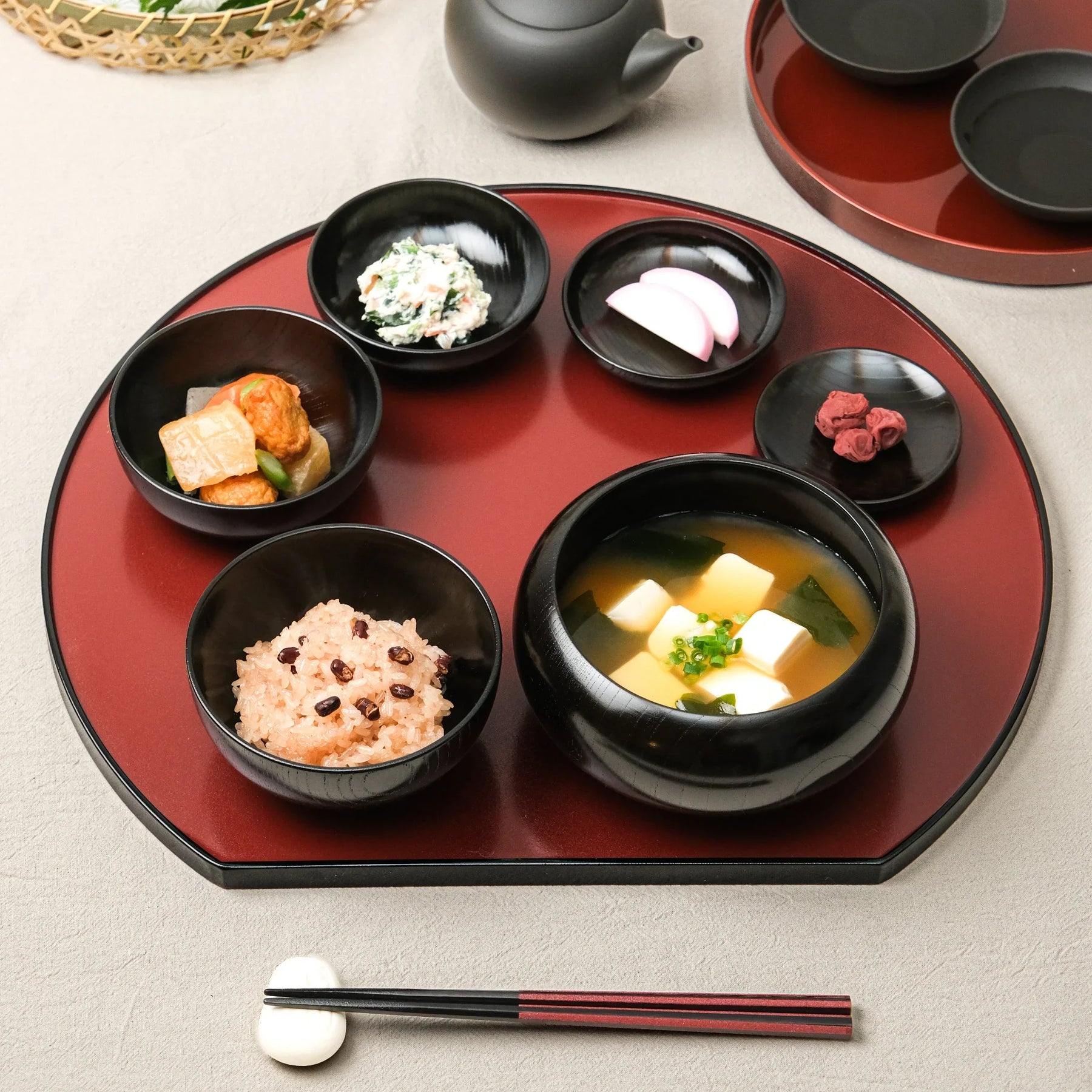 Durable yet graceful, the Black Lacquered Oryoki Bowl is ideal for serving rice, soup, or small dishes. Whether used individually or as a nested set, it enriches the table with a sense of history, artistry, and harmony.