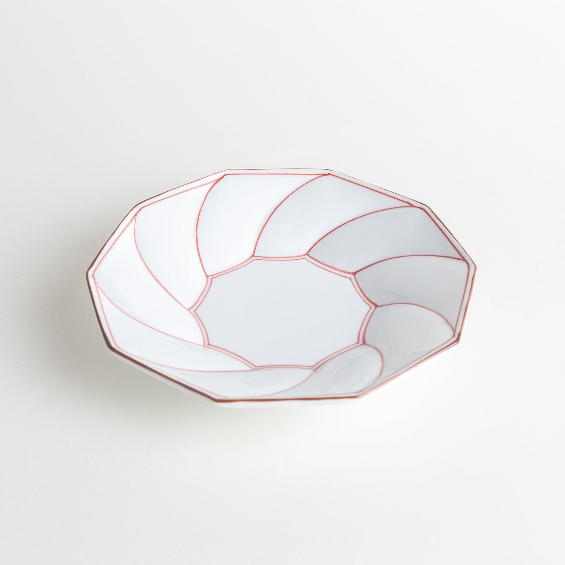 With its clean lines and petal-like geometry, this Geometric Blossom Rimmed Luncheon Plate brings both precision and charm to your table. The softly faceted form is inspired by layered flower petals, while the subtle spiral effect echoes traditional Japanese motifs such as pinwheels and chrysanthemum blooms.