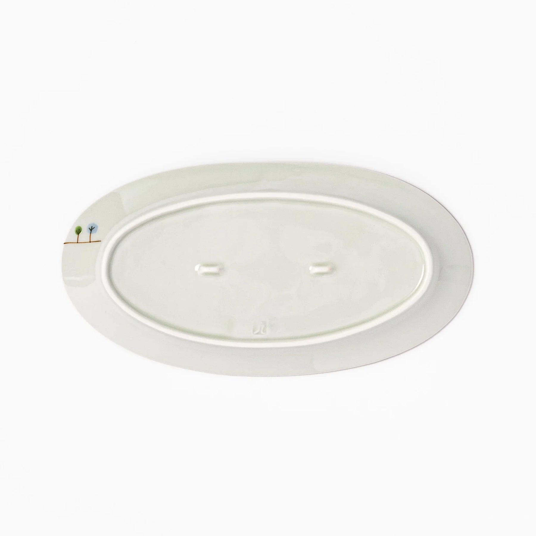 Its oval shape offers a comfortable surface for salads, pastries, fruit, or light meals. The smooth porcelain finish keeps the design airy and bright, while the whimsical illustration brings a moment of calm to everyday dining. Light in hand yet sturdy enough for daily use, it is a lovely piece that blends playfulness with simplicity.