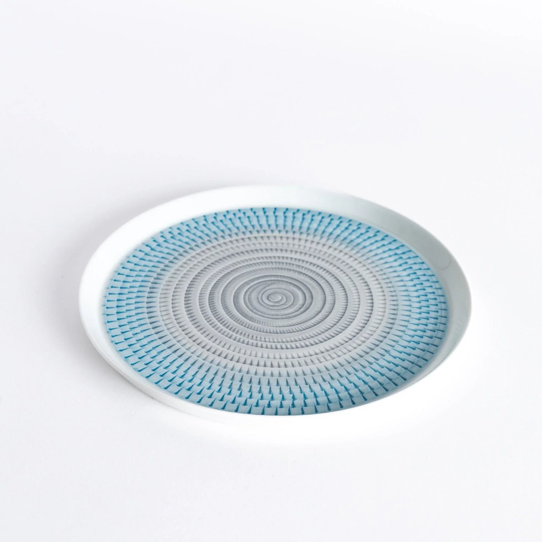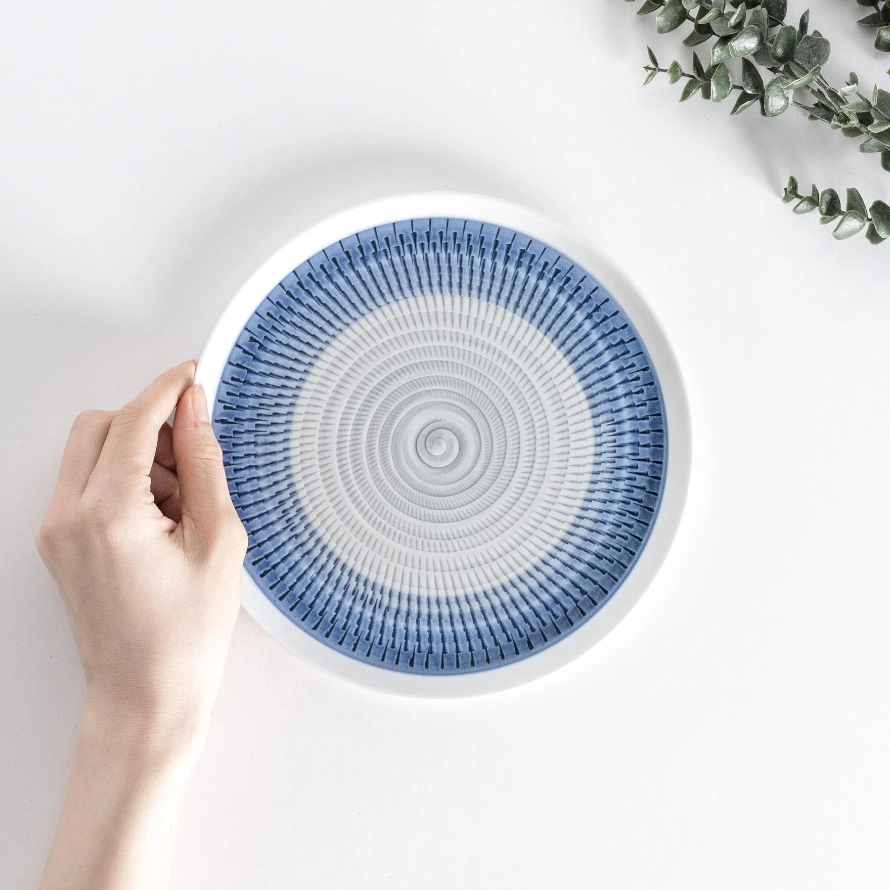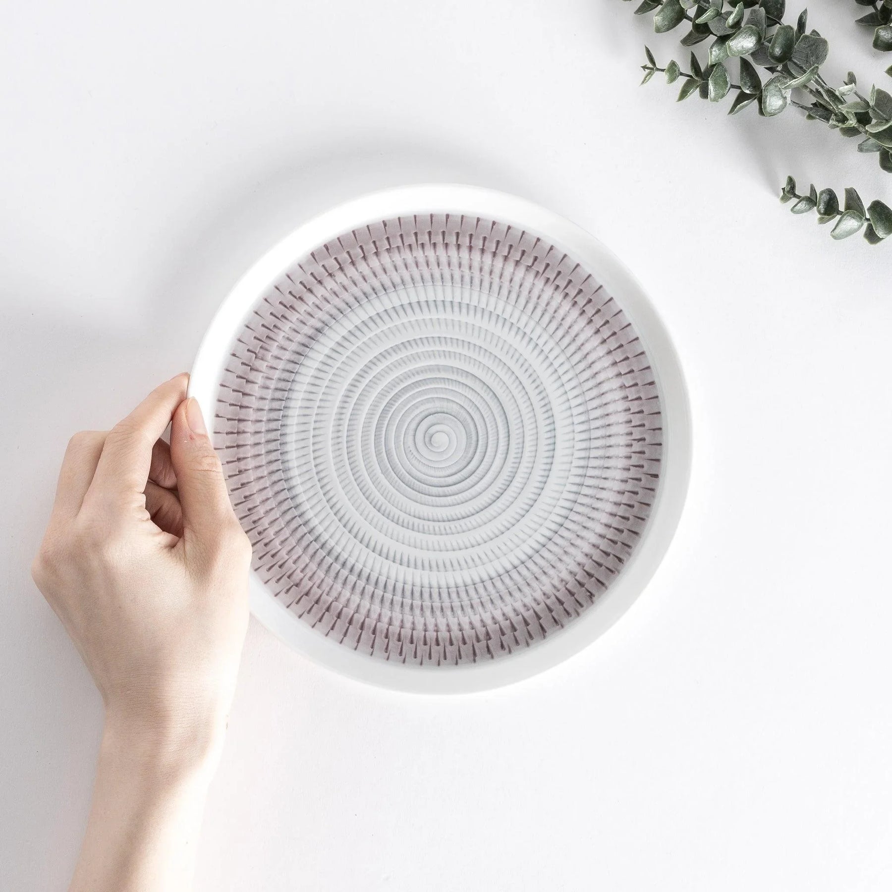 Light and harmonious, the Ethereal Stripe Salad Plate brings quiet artistry to everyday dining. Its intricate radial pattern is inspired by tobikana, a traditional Japanese carving technique known for creating fine, rhythmic lines. Each stripe is delicately hand-painted to form a soft spiral that draws the eye inward, evoking a sense of calm and balance at the table.