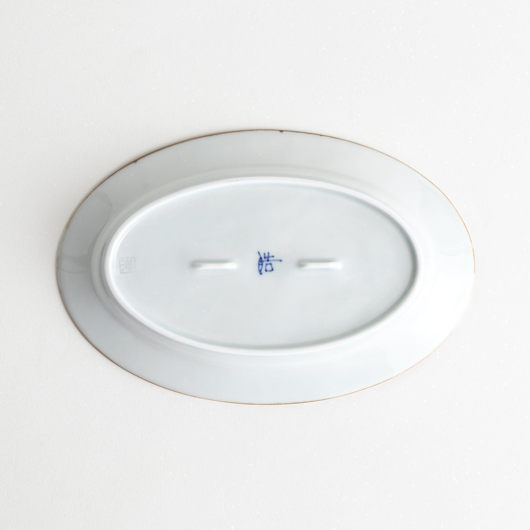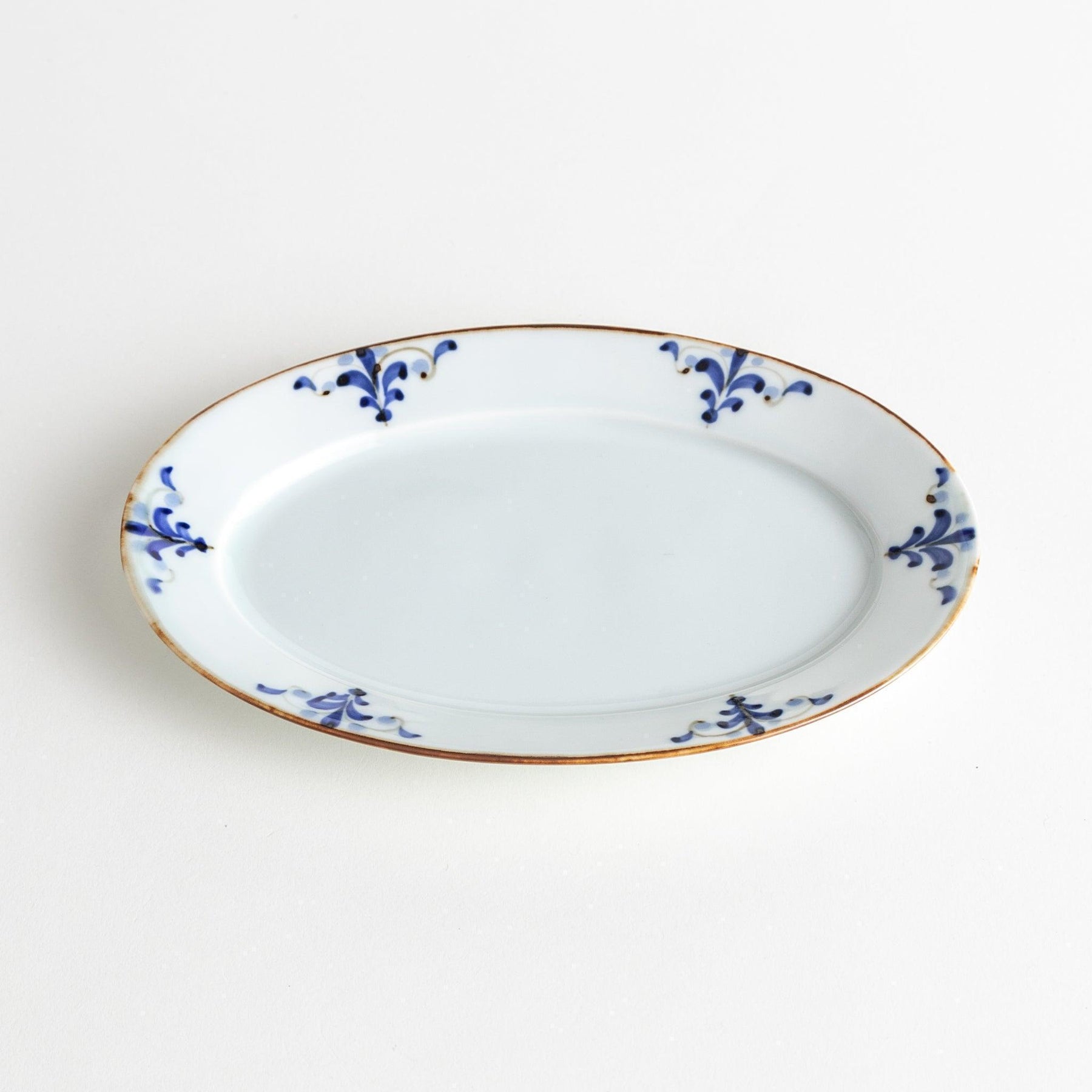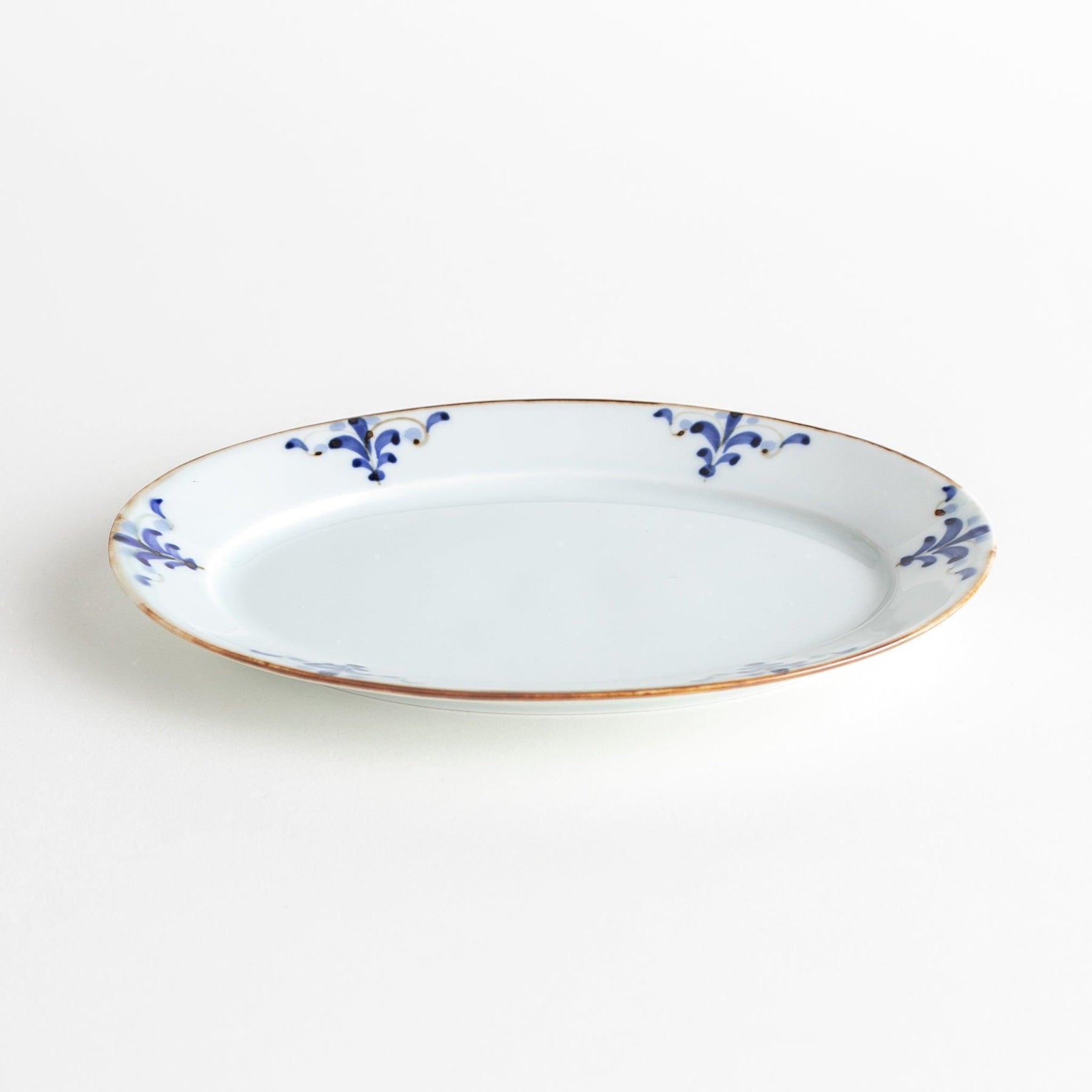 Elegant and versatile, the Floral Leaves Three-Piece Oval Plate Set brings timeless charm to everyday meals and special gatherings. Crafted from fine Arita ware porcelain, each plate features hand-painted indigo floral motifs spaced delicately around the rim. The soft, stylized leaves add a graceful rhythm, while the warm brown edge creates a gentle contrast against the white porcelain.