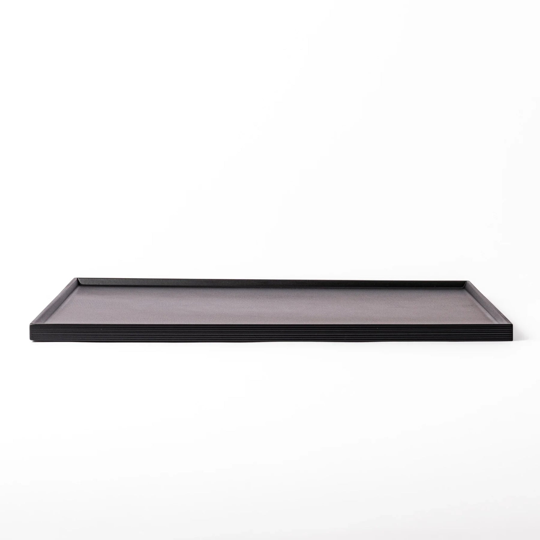 Bring refined elegance to your table with the Modern Japanese Lacquer Serving Tray, a striking piece that blends contemporary design with traditional craftsmanship. Made in Japan, this rectangular wooden tray features a smooth matte black lacquer finish and a distinctive diagonal ridge, creating a clean geometric look that feels both modern and timeless.