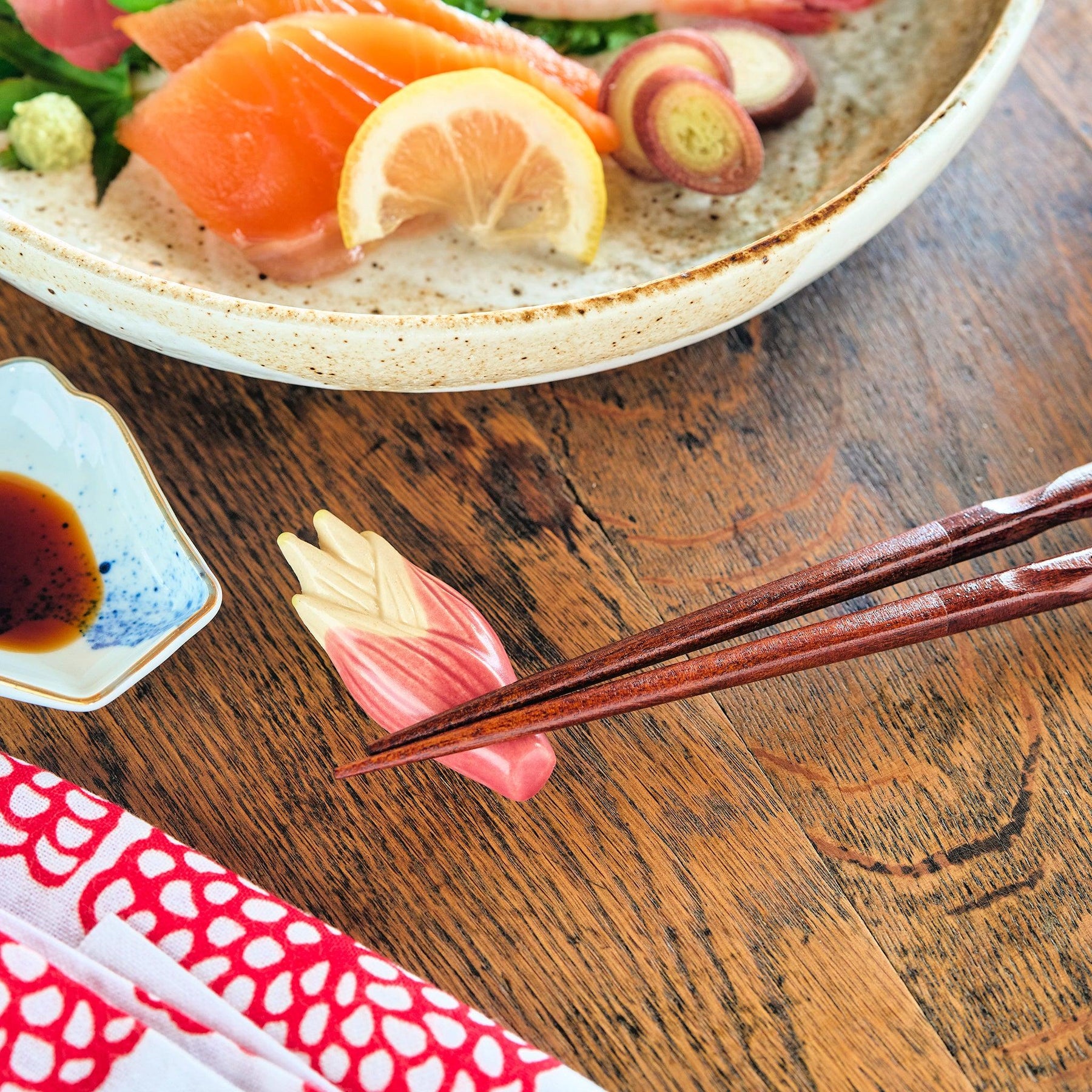 Both functional and expressive, the Myoga Ginger Chopstick Rest adds personality to everyday dining and enriches seasonal or themed table settings with artistry and warmth..