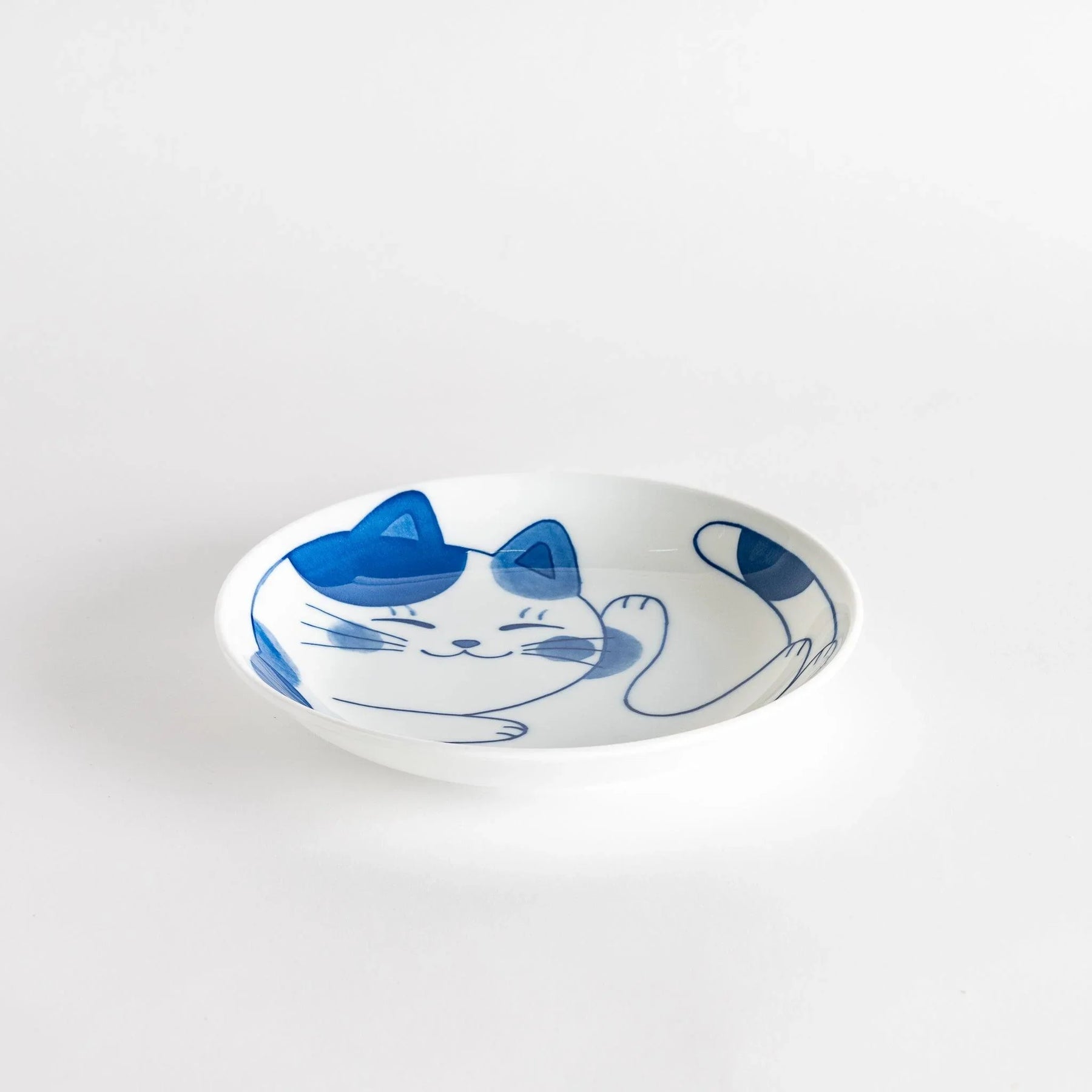 The Calico Cat Cereal Bowl brings a playful spirit to the dining table with its cheerful design of a relaxed blue-and-white calico cat. Known in Japan as mike neko, calico cats are cherished symbols of good luck and prosperity, often celebrated in maneki neko figures. This joyful motif adds a sense of charm and positivity to every meal.
