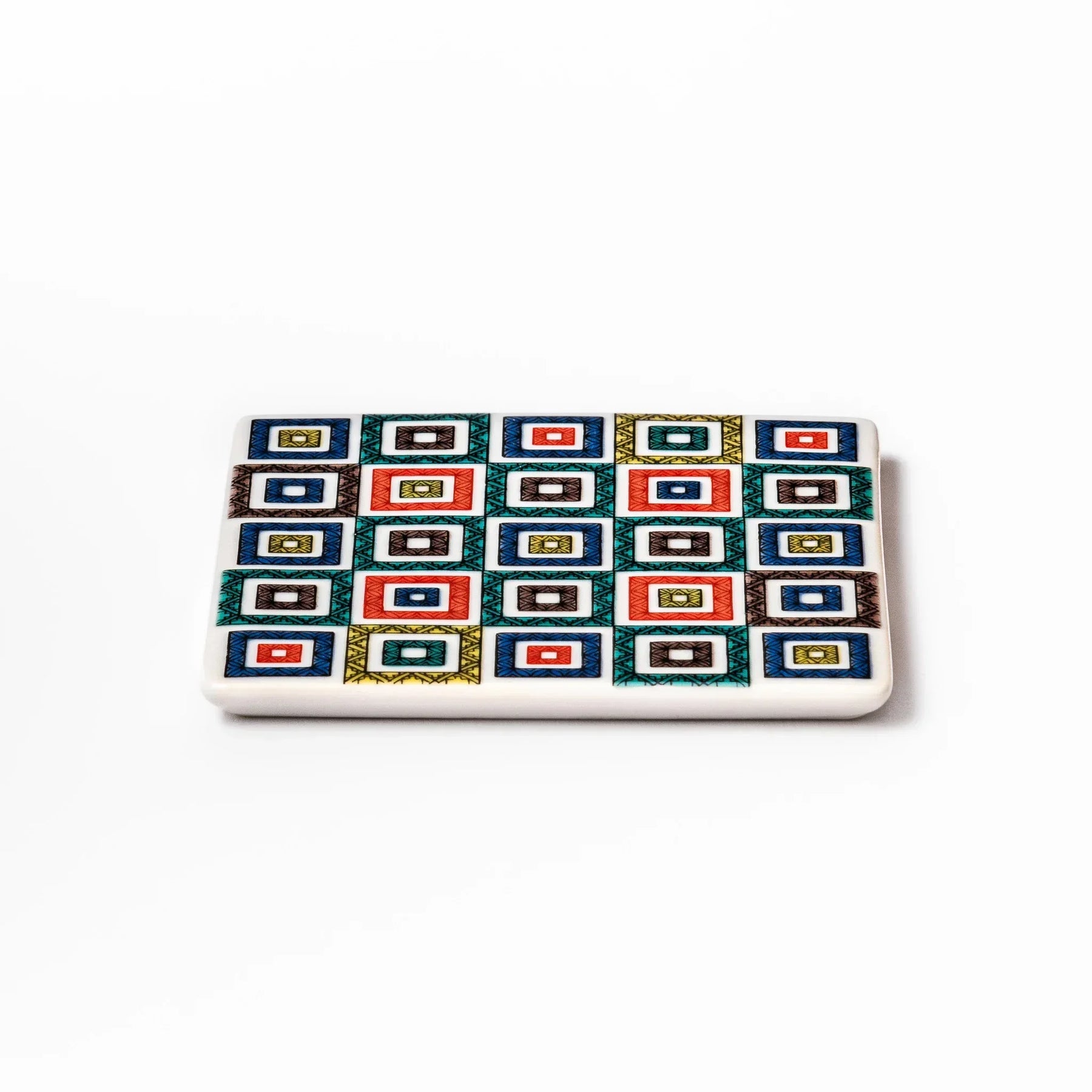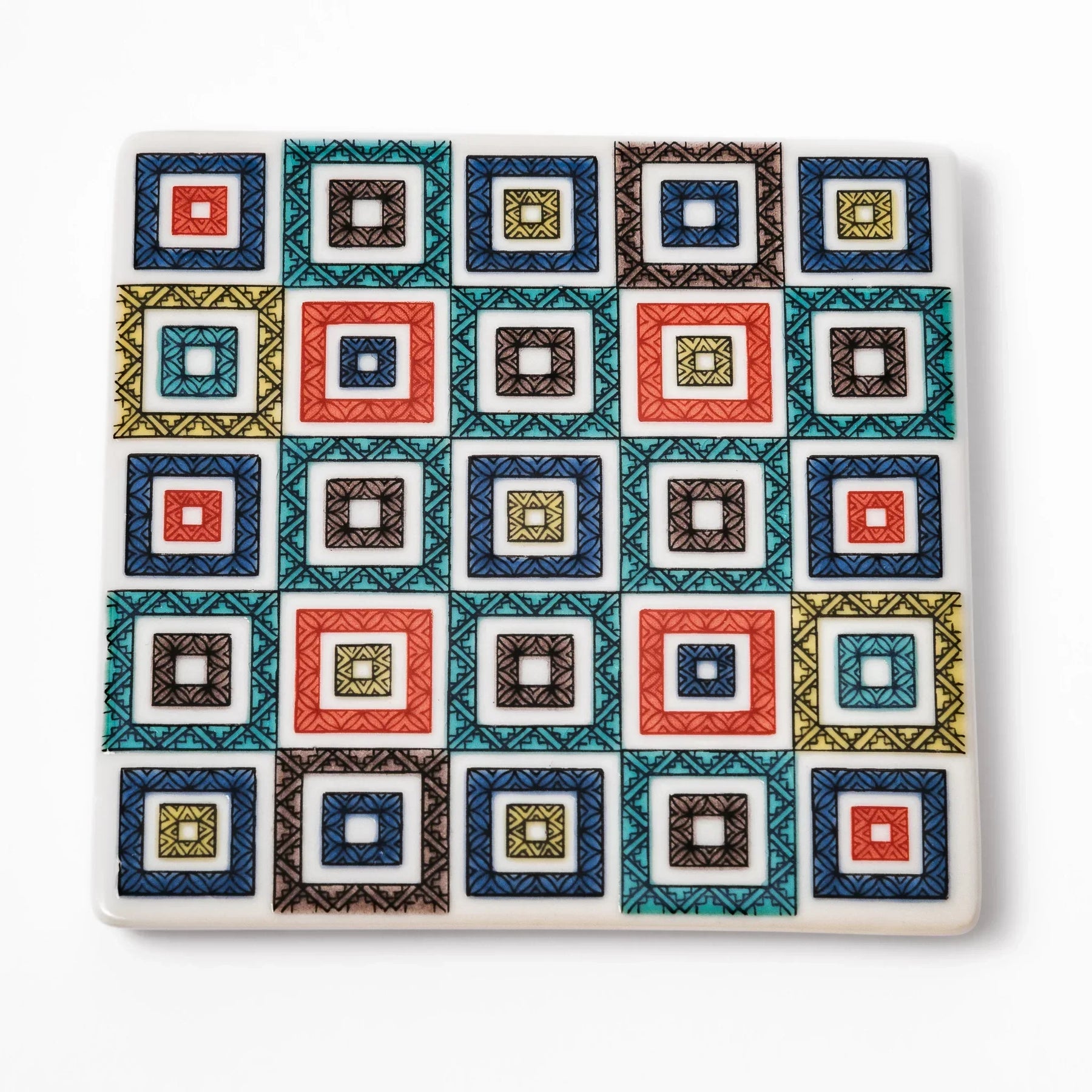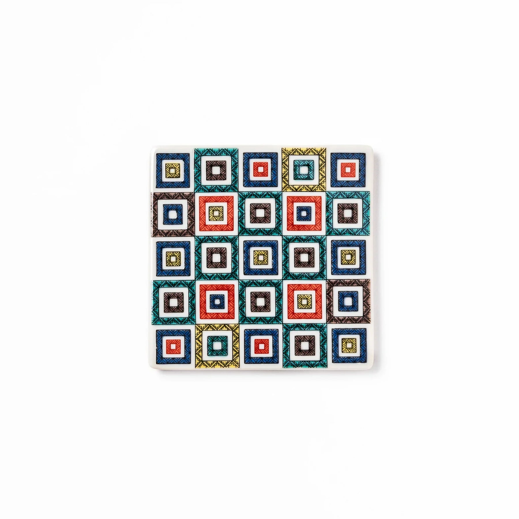 Add a bold touch of tradition and color to your space with the Cobblestone Mosaic Coaster, inspired by classic Japanese ishidatami stone pavements. Featuring a vibrant grid of multicolored geometric squares, this porcelain coaster brings both visual charm and practical function to your table.