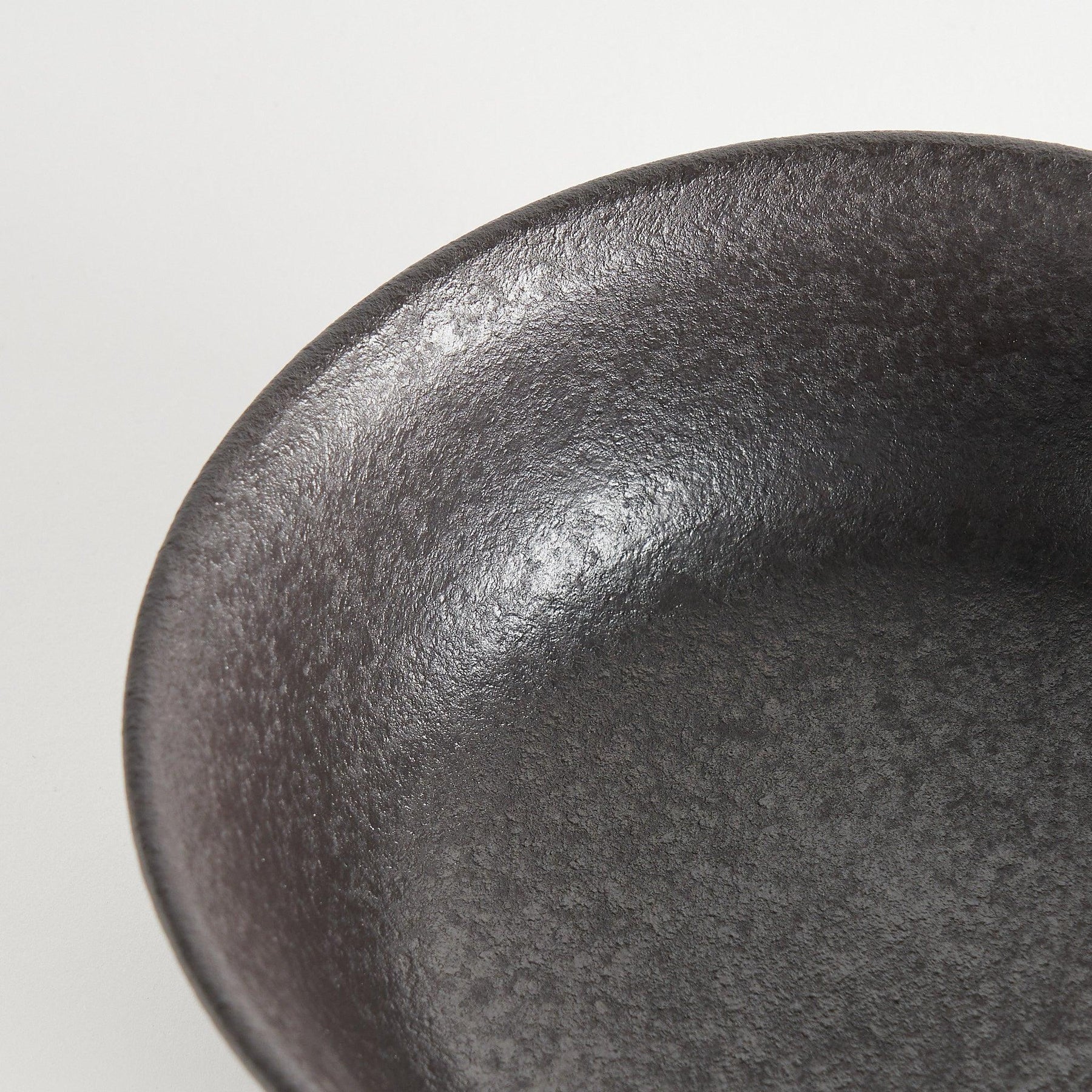 The matte glaze, a deep brownish-black, has a subtle texture that catches the light softly and adds visual warmth. Its surface evokes a sense of stillness, reminiscent of dew settling on dark stone. The rustic finish contrasts beautifully with vibrant ingredients, making each dish feel more grounded and intentional.