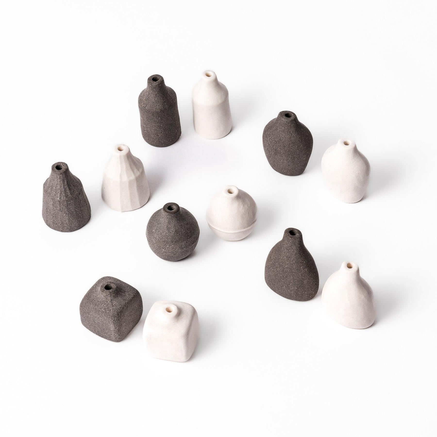 The Minimalist Ceramic Bud Vase brings quiet elegance and playful style to any space. Each vase features a soft matte finish in black or white, creating a timeless and versatile look. With shapes including teardrop, pear, orb, square, prism, and cylinder, every piece has its own distinct personality. Arranged together, the contrast of colors and forms creates a composition that feels effortlessly stylish.