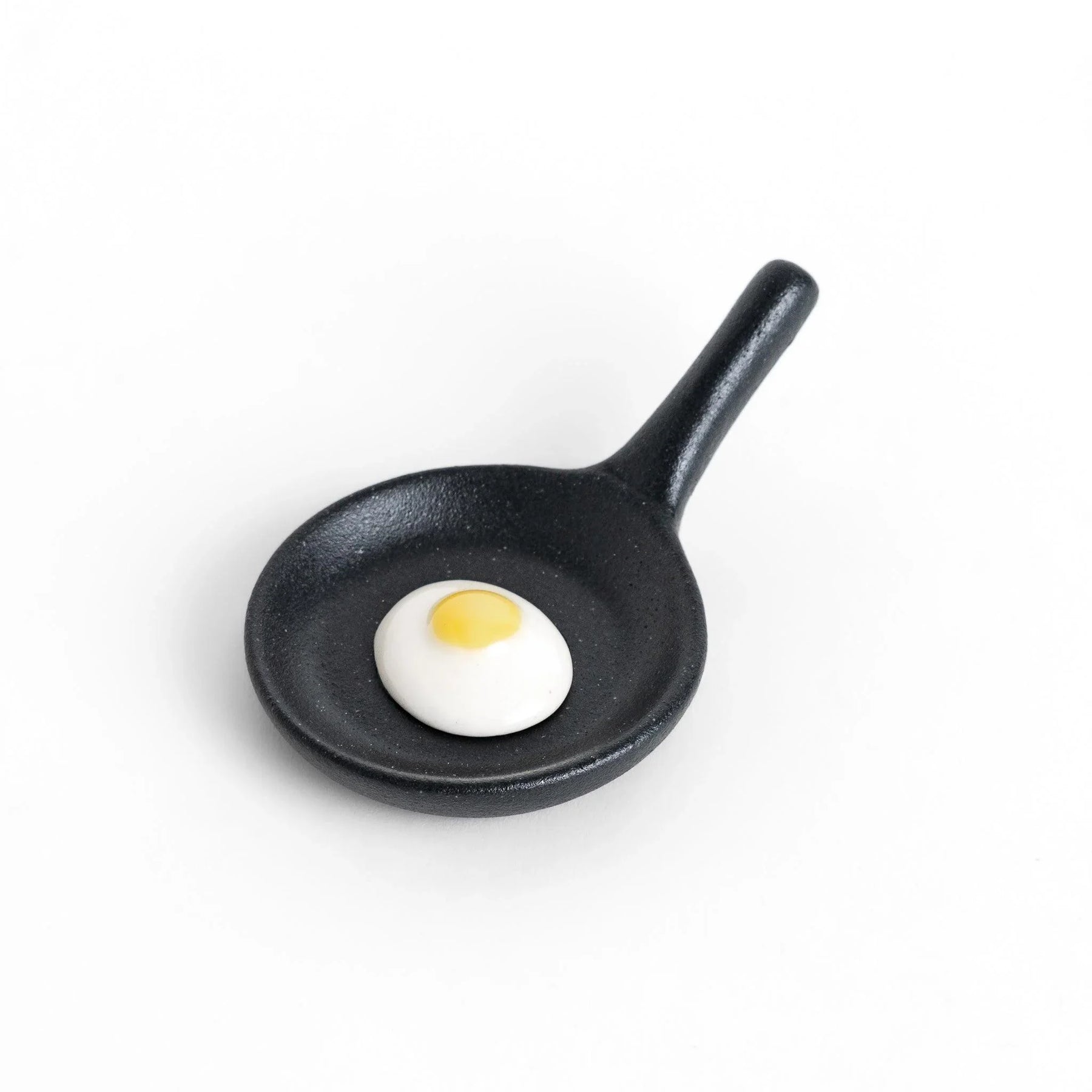 Playful yet functional, the Pan Fried Egg Chopstick Rest brings a cheerful touch to your dining table. Crafted in Mino Ware, one of Japan’s most celebrated ceramic traditions, it is shaped like a miniature skillet with a hand-painted sunny-side-up egg at the center. The contrast of the matte black pan with the glossy white and golden glaze creates a look so realistic it feels as though it has just come off the stove.