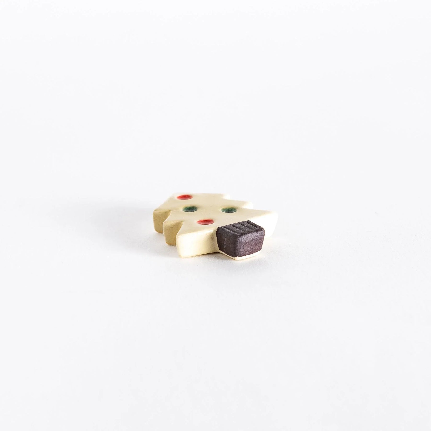 The White Christmas Tree Chopstick Rest adds a joyful touch to holiday dining. Shaped like a tiny Christmas tree, it is decorated with bright red and green ornaments that pop against the soft white surface. Its playful charm brings an instant sense of celebration to the table, making meals feel more festive and fun.