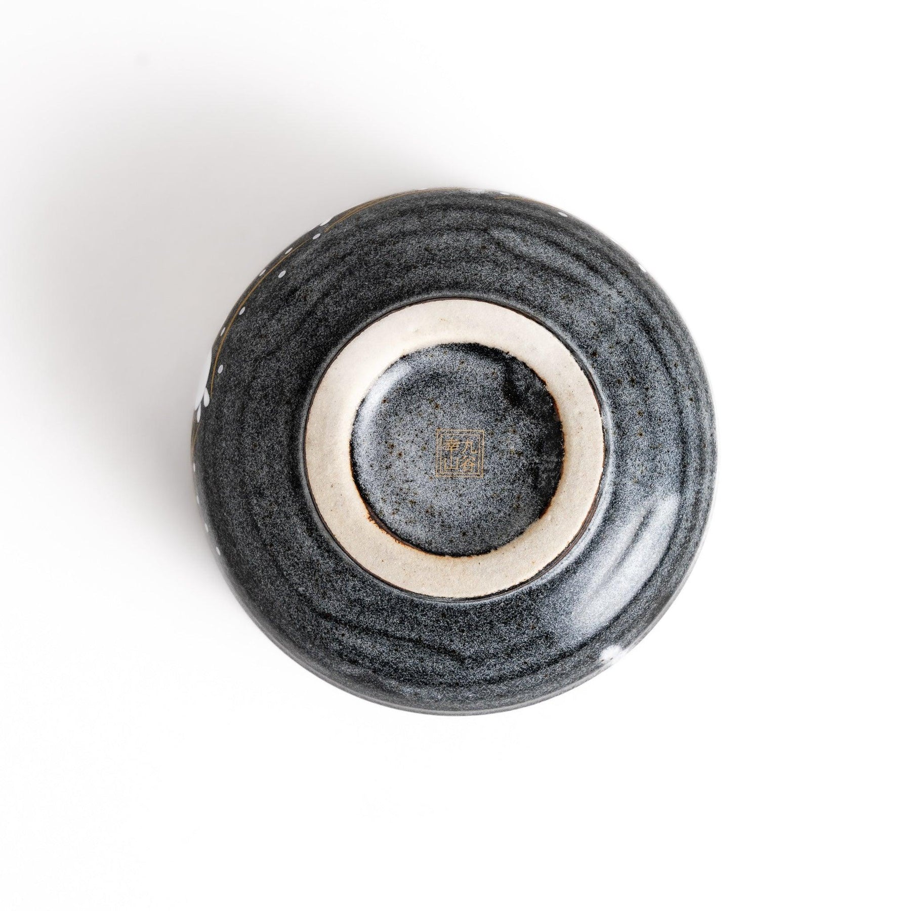 The Dancing Rabbit Matcha Bowl captures the charm of folklore in a form suited for everyday tea moments as well as traditional tea ceremony. Against a soft gray background, playful white rabbits leap across golden waves beneath a glowing full moon, a joyful design that symbolizes good fortune and seasonal celebration in Japan. The imagery recalls the “moon rabbit,” a beloved figure in Japanese tradition that brings a sense of wonder to each use.