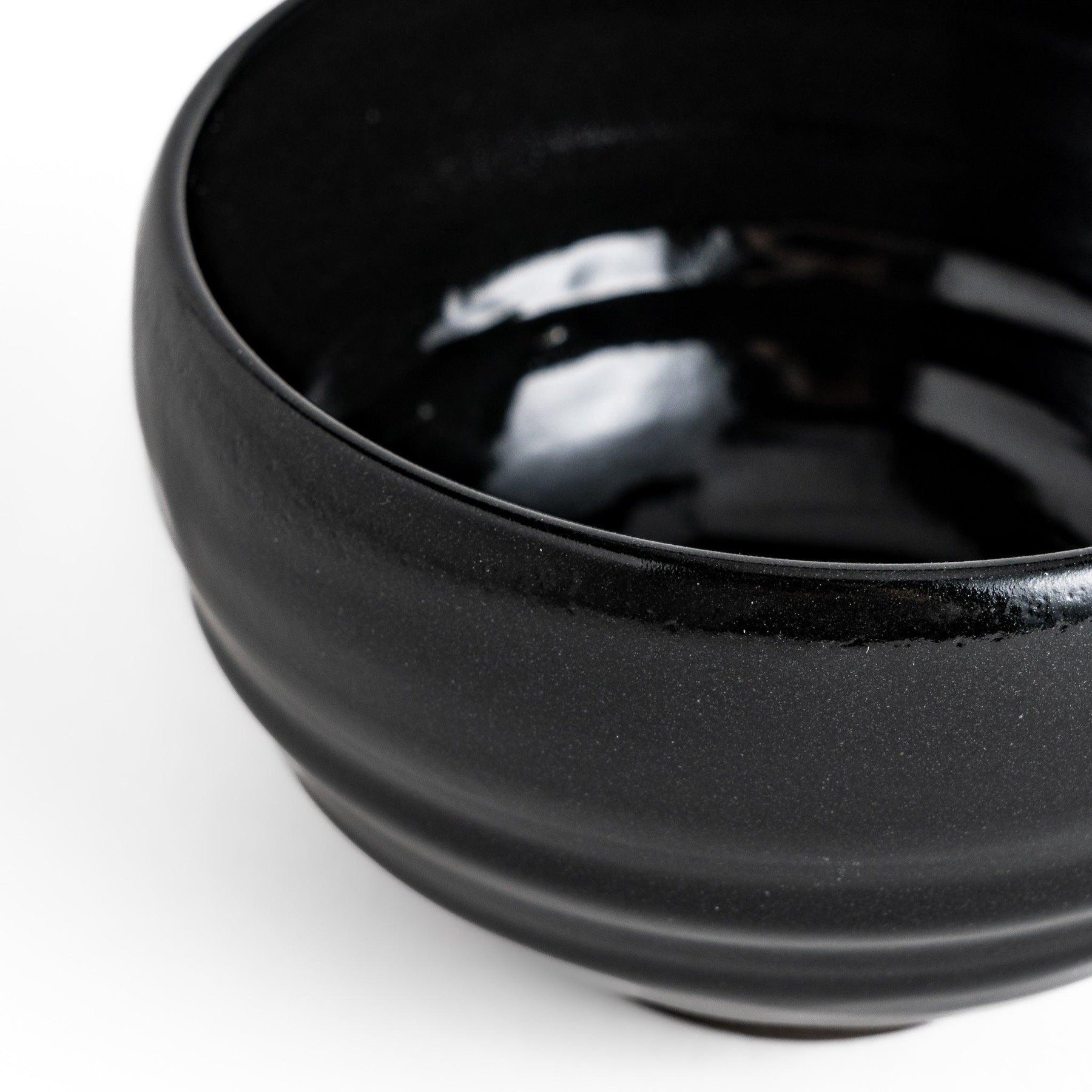 The Twilight Groove Matcha Bowl reflects the serene atmosphere of nightfall. Its glossy black glaze glimmers like a quiet sky, while the hand-carved lines along the surface evoke flowing shadows. This interplay of depth and light creates a vessel that feels both grounded and ethereal, inviting reflection with every use.