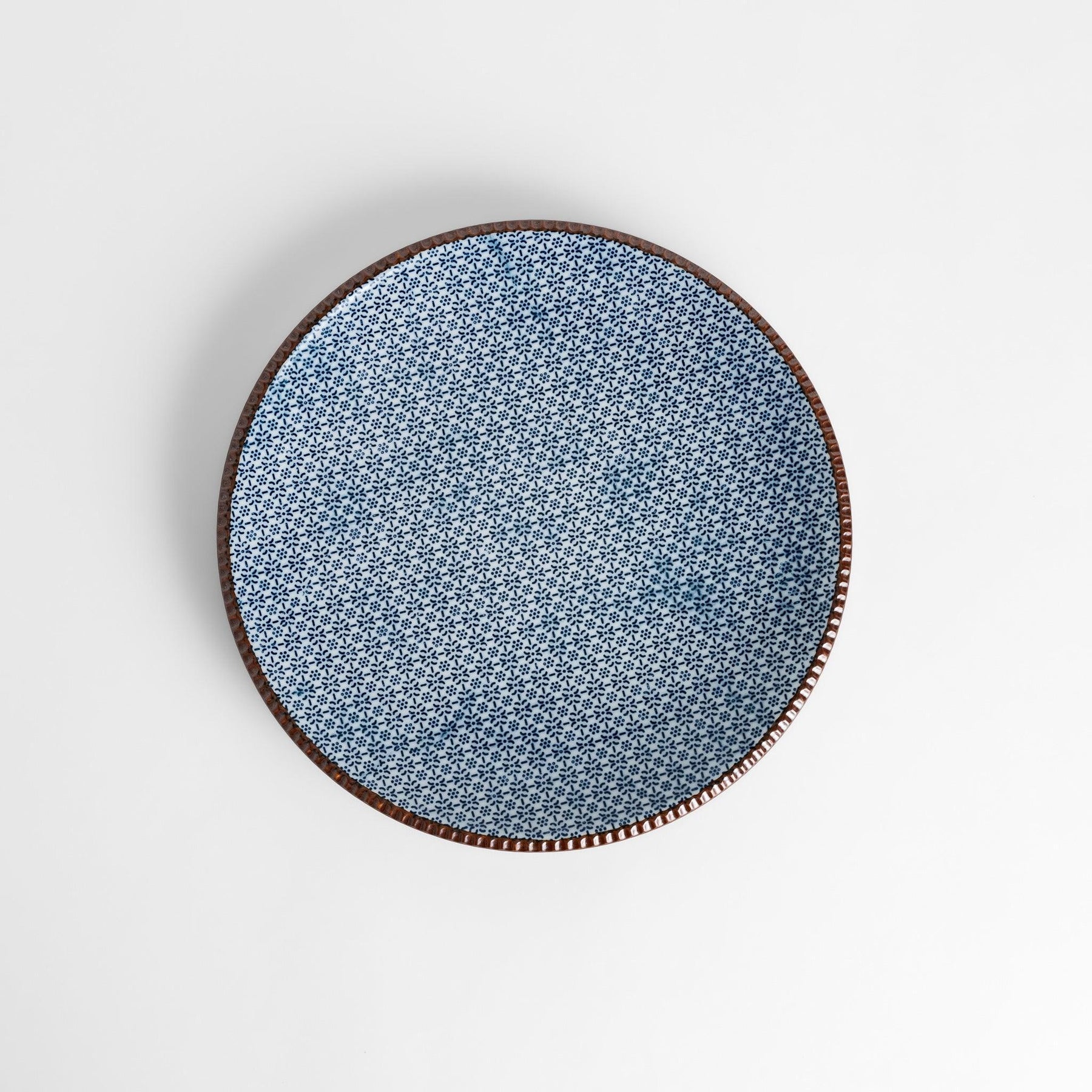 The dimpled brown rim frames the intricate surface with warmth, balancing rustic charm and sophistication. Versatile in design, it is well-suited for a variety of dishes such as grilled fish, pasta, salads, or shared plates, making it an ideal choice for both everyday meals and festive occasions. The subtle pattern enhances presentation, ensuring that even simple foods are elevated in appearance.