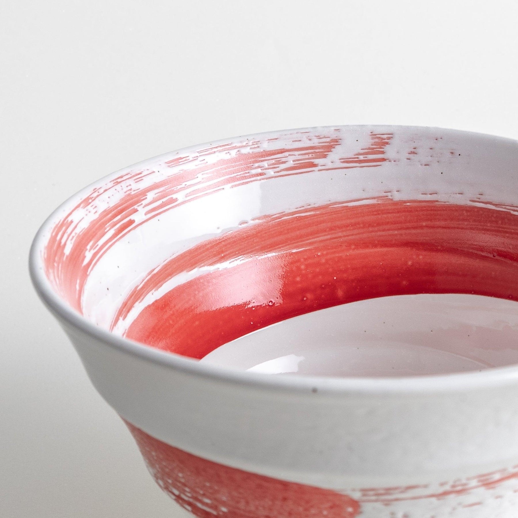 The Red Swirl White Ramen Bowl features a vivid red spiral set against a crisp white base, creating a striking visual that draws the eye. Handcrafted Mino ware, it reflects the refined skill and attention to detail of Japanese ceramic artisans. The smooth glazed interior contrasts beautifully with the subtly textured exterior, while the swirl design adds a sense of movement and liveliness to your table.