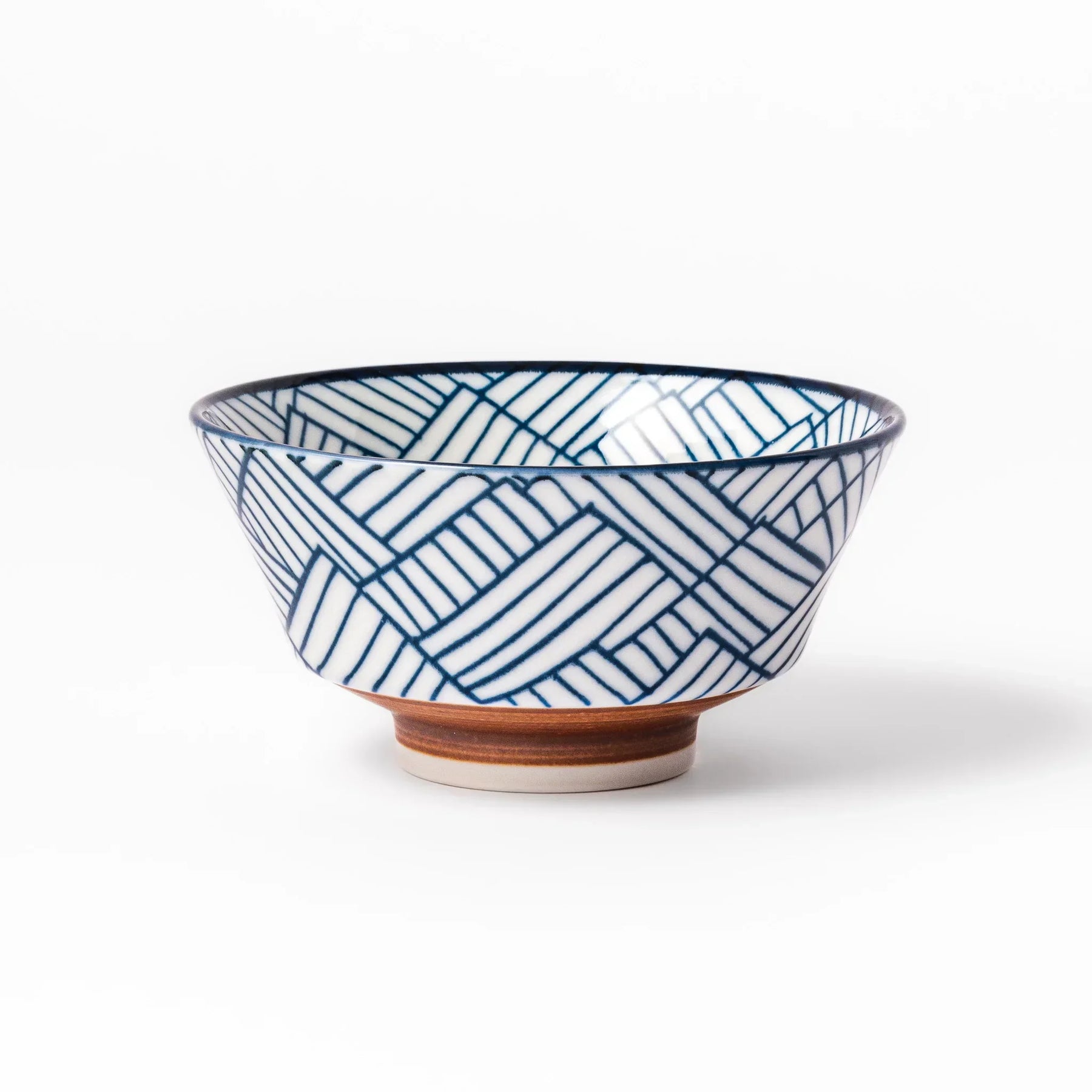 The Basket Weave Rice Bowl features the ajiro motif—an intricate lattice pattern drawn from traditional Japanese bamboo crafts. Symbolizing connection, craftsmanship, and stability, the overlapping indigo lines offer a tactile, woven impression.