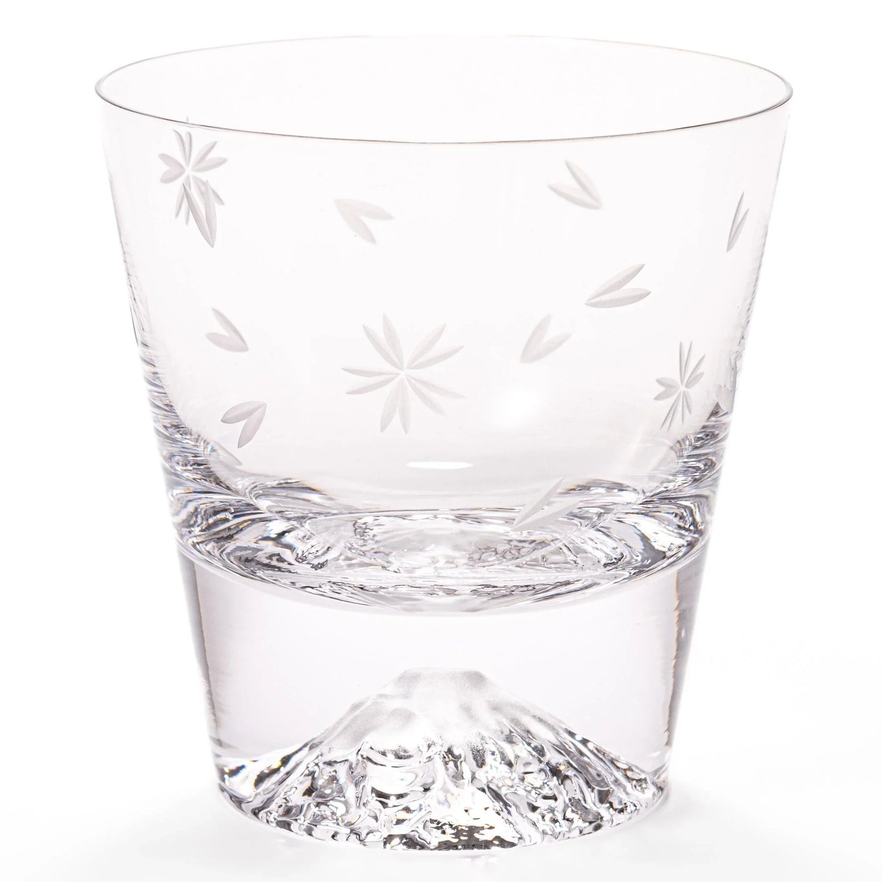 Raise a glass to beauty and tradition with the Tajima Mount Fuji Rocks Glass Set – Sakura. Handcrafted by skilled Edo Glass artisans, each tumbler features a finely carved Mount Fuji rising from the base, paired with delicate sakura blossoms etched along the sides. Together, the mountain and cherry blossoms symbolize strength, renewal, and the fleeting beauty of nature.