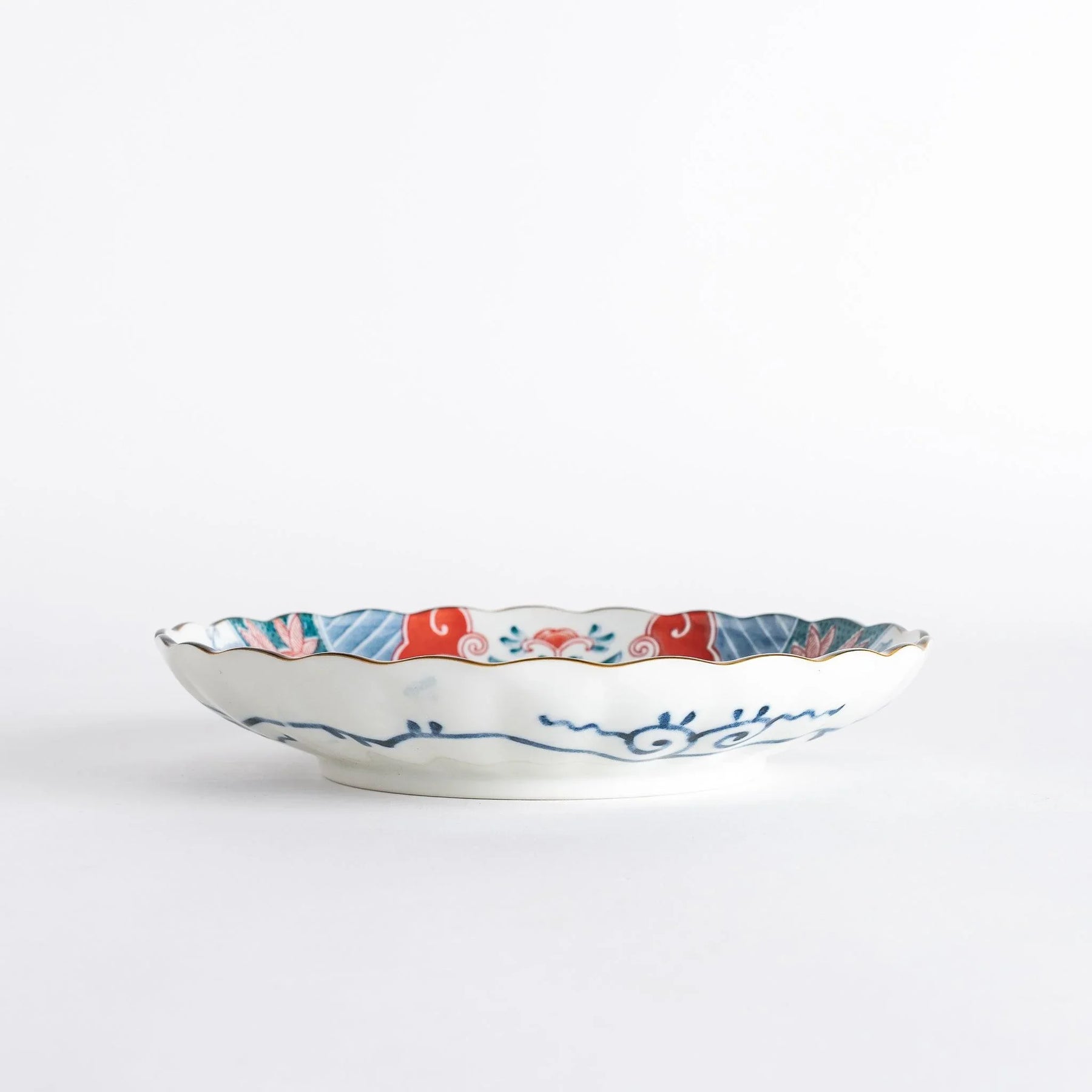Crafted in the Mino region, the plate reflects the skill of Japanese artisans who blend tradition with playful creativity. The scalloped rim and vivid patterns add charm, while the practical form makes it perfectly suited for serving salads, desserts, or small dishes in daily life.