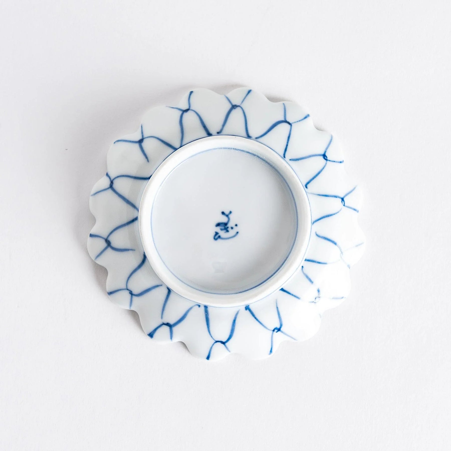 The slightly raised foot adds presence while making the dish easy to handle and lift. Ideal for serving soy sauce, ponzu, or other dipping condiments, it also works beautifully for pickled vegetables or a small seasonal sweet during tea time. The pattern continues onto the underside of the rim, offering beauty from every angle and making it a lovely addition to any seasonal or curated table setting.