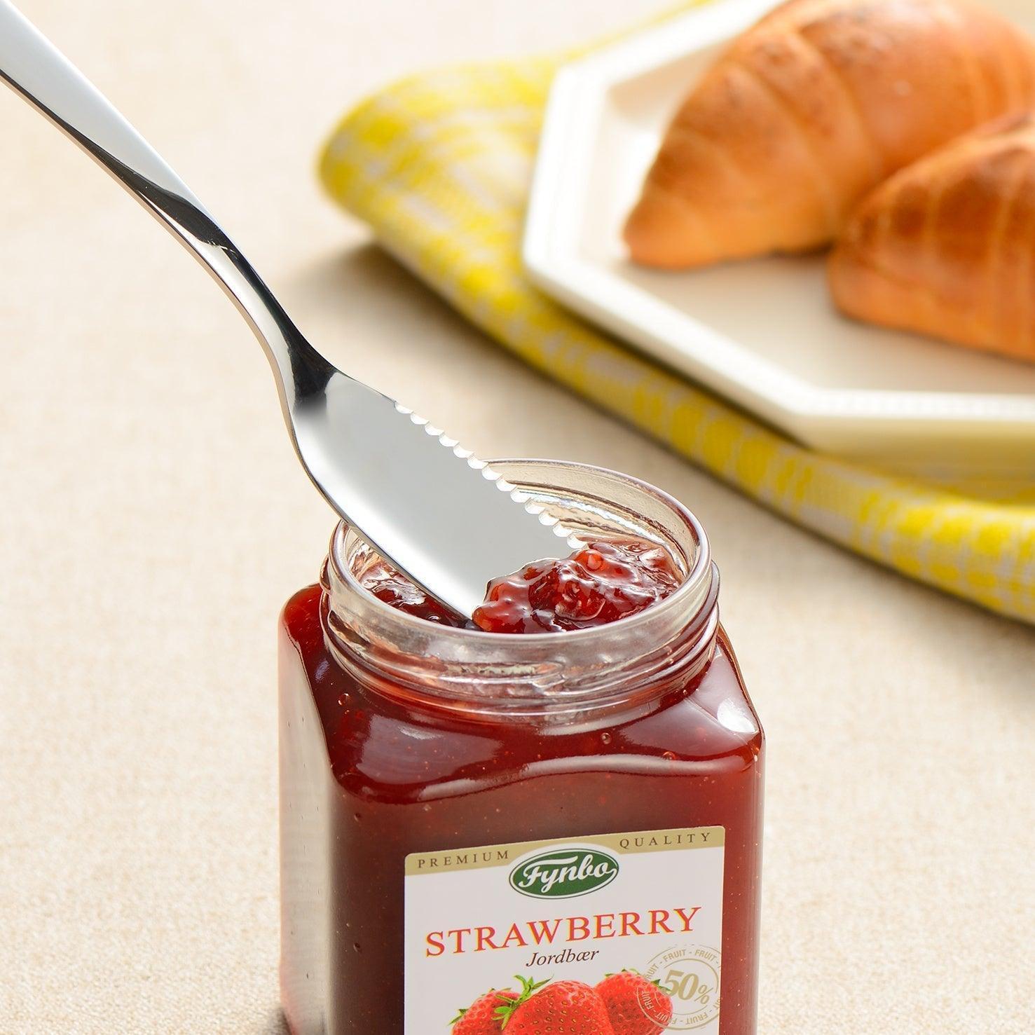 Thoughtfully designed for daily use, the AUX Japanese Butter Knife combines elegance and practicality in one compact tool. Made from polished stainless steel, this multipurpose knife is shaped to gently scoop, spread, and slice with ease. The slightly curved blade allows you to lift just the right amount of butter or jam, while the finely serrated edge can be used to slice through soft bread or rolls. The smooth side spreads effortlessly across toast or warm bread.