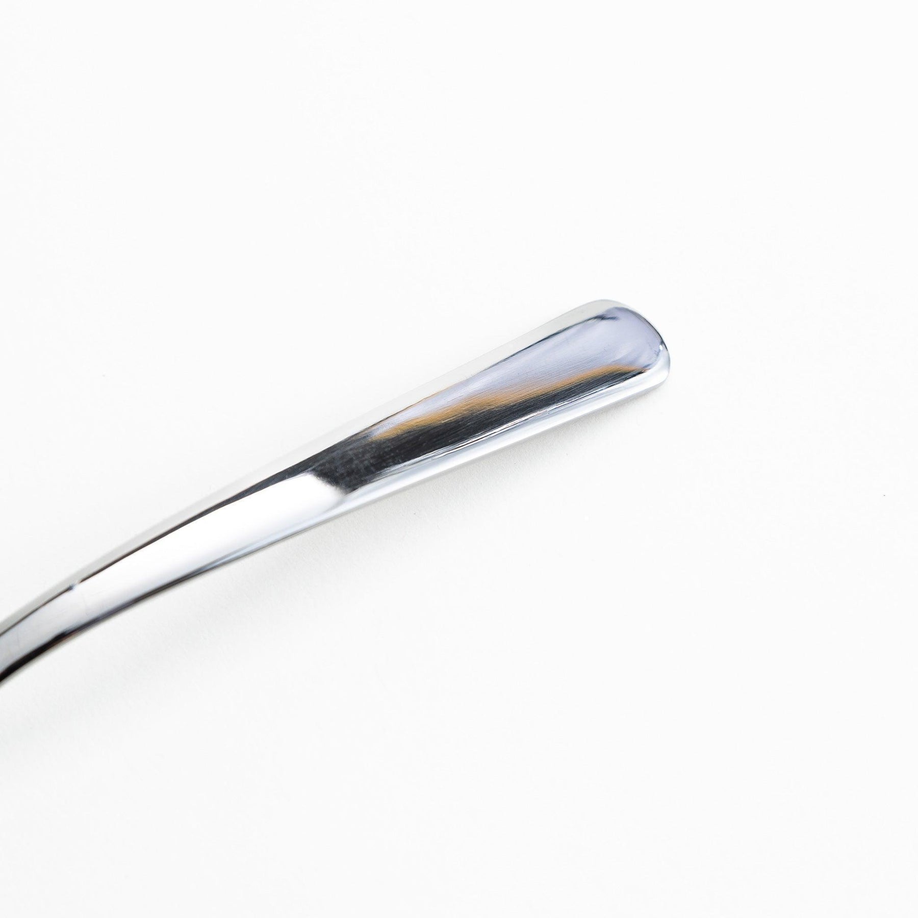 The handle fits comfortably in the hand, offering balance and control without excess bulk. Its clean lines and mirrored finish make it a natural companion to both Japanese and Western tableware, whether used during breakfast or an afternoon tea setting.