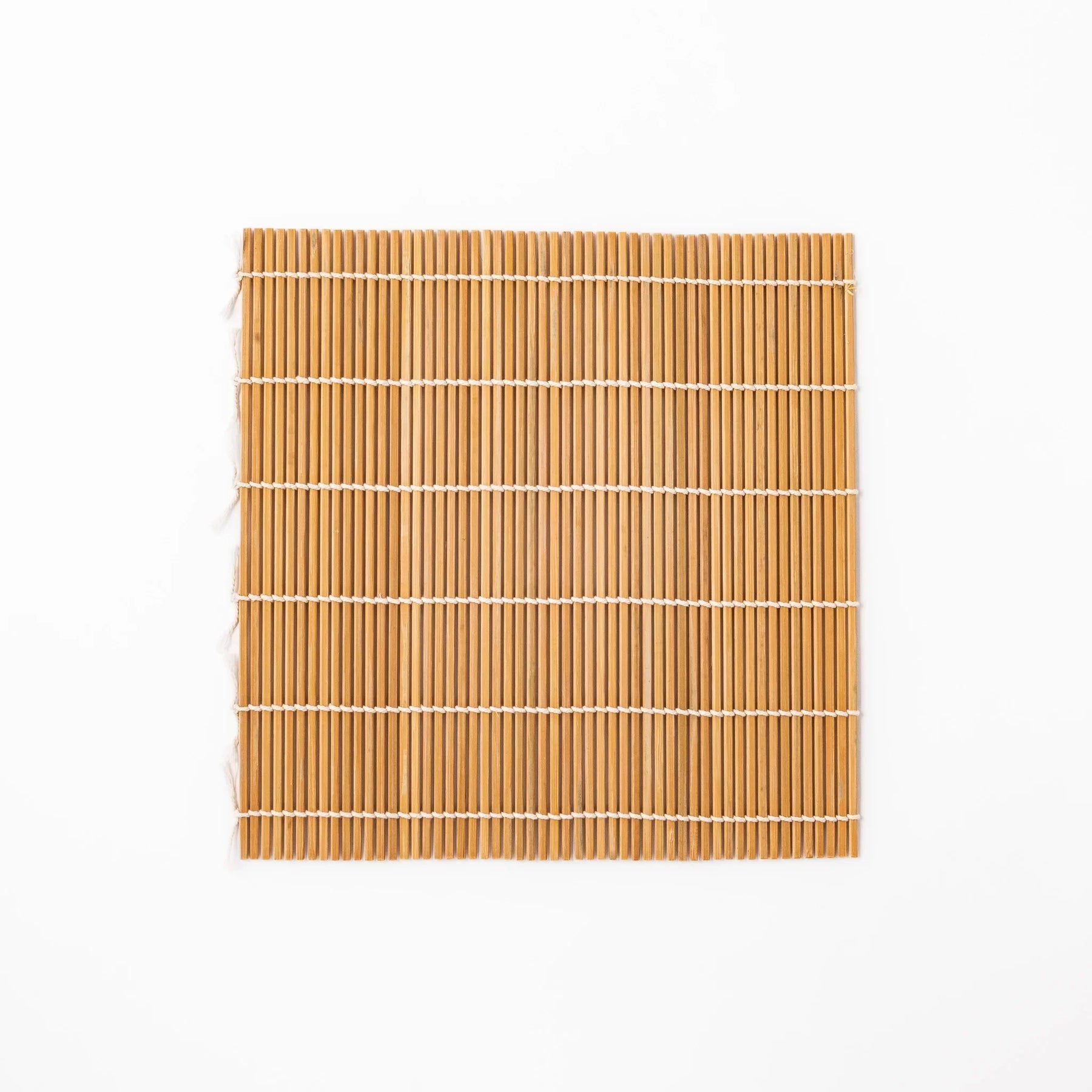 Available in two sizes, 9.5 in (24 cm) and 10.5 in (27 cm), the mat adapts easily to hosomaki, futomaki, and even Korean kimbap. It is perfect for bento making, home gatherings, or seasonal celebrations such as New Year, Hinamatsuri, and Ehomaki. Each slat is finely split and hand tied with cotton thread, ensuring durability and smooth handling.