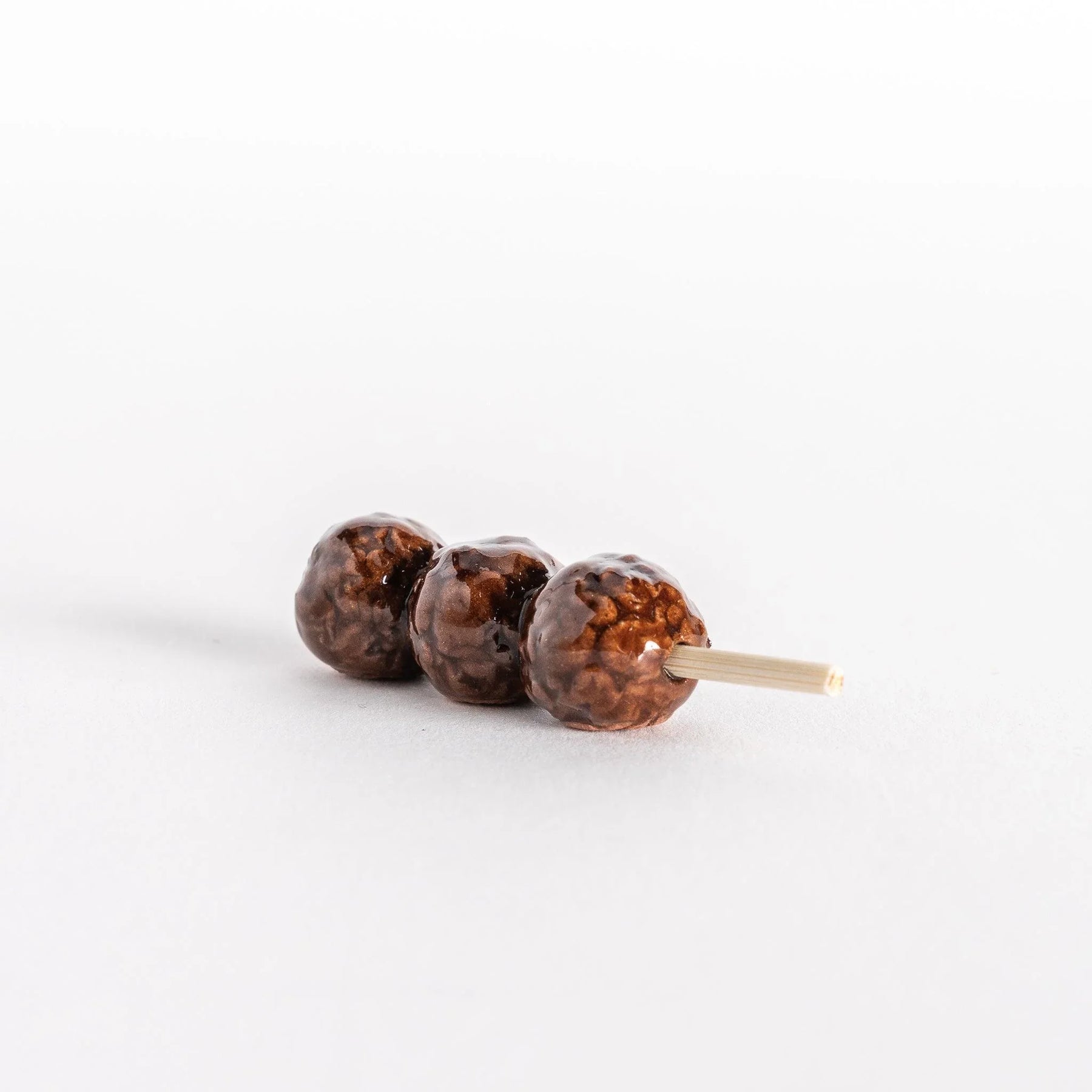 Playful and eye catching, the Tsukune (Chicken Meatballs) Chopstick Rest brings humor and charm to the dining table. Inspired by the popular yakitori skewer, it features three glossy meatballs on a stick, carefully crafted in porcelain with remarkable detail. The realistic glaze and texture capture the look of freshly grilled tsukune, making this piece as delightful to admire as it is to use.