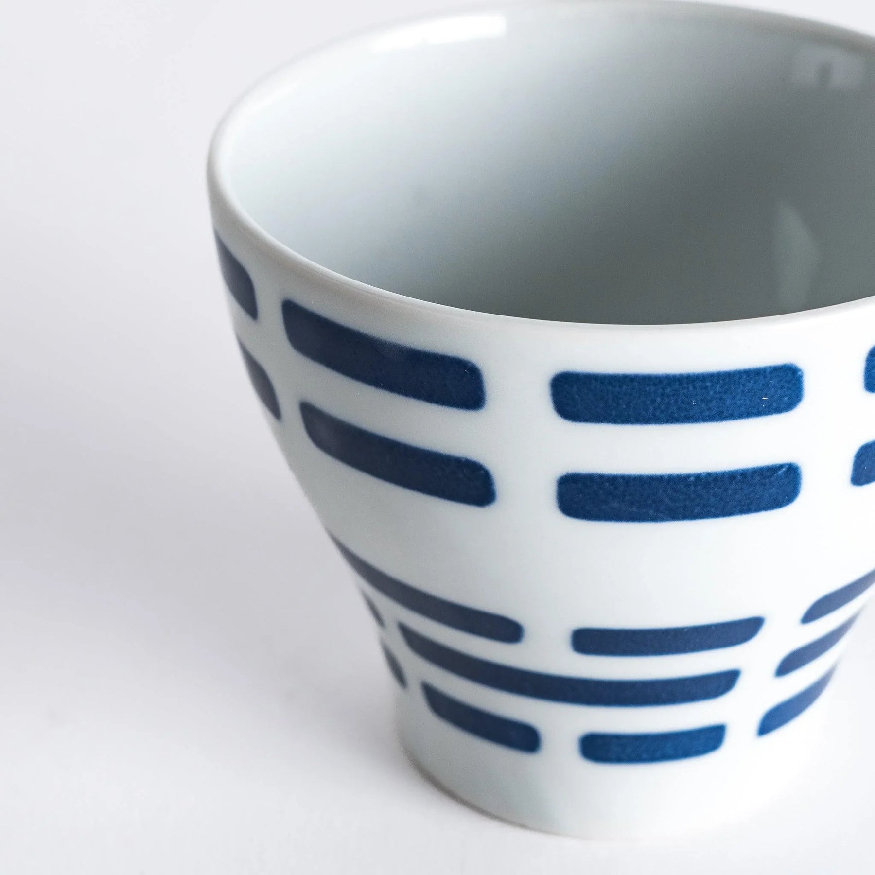 The Modern Indigo River Cup brings a refreshing sense of movement to the table with its flowing indigo motif. Rectangular strokes in varying lengths symbolize the steady current of a river, a timeless theme in Japanese design that evokes clarity and renewal. The minimalist pattern pairs beautifully with both contemporary and traditional settings, making it a versatile piece for everyday use.